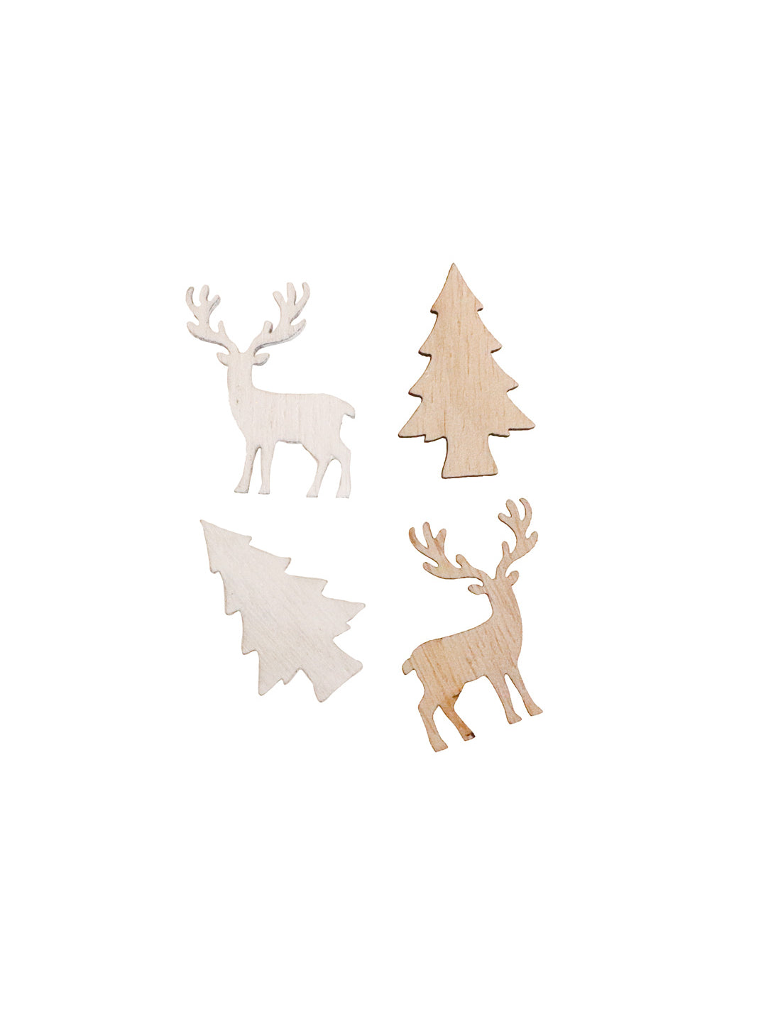 24 Confetti în lemn natural și sapine albe și cerbi 3,5 cm