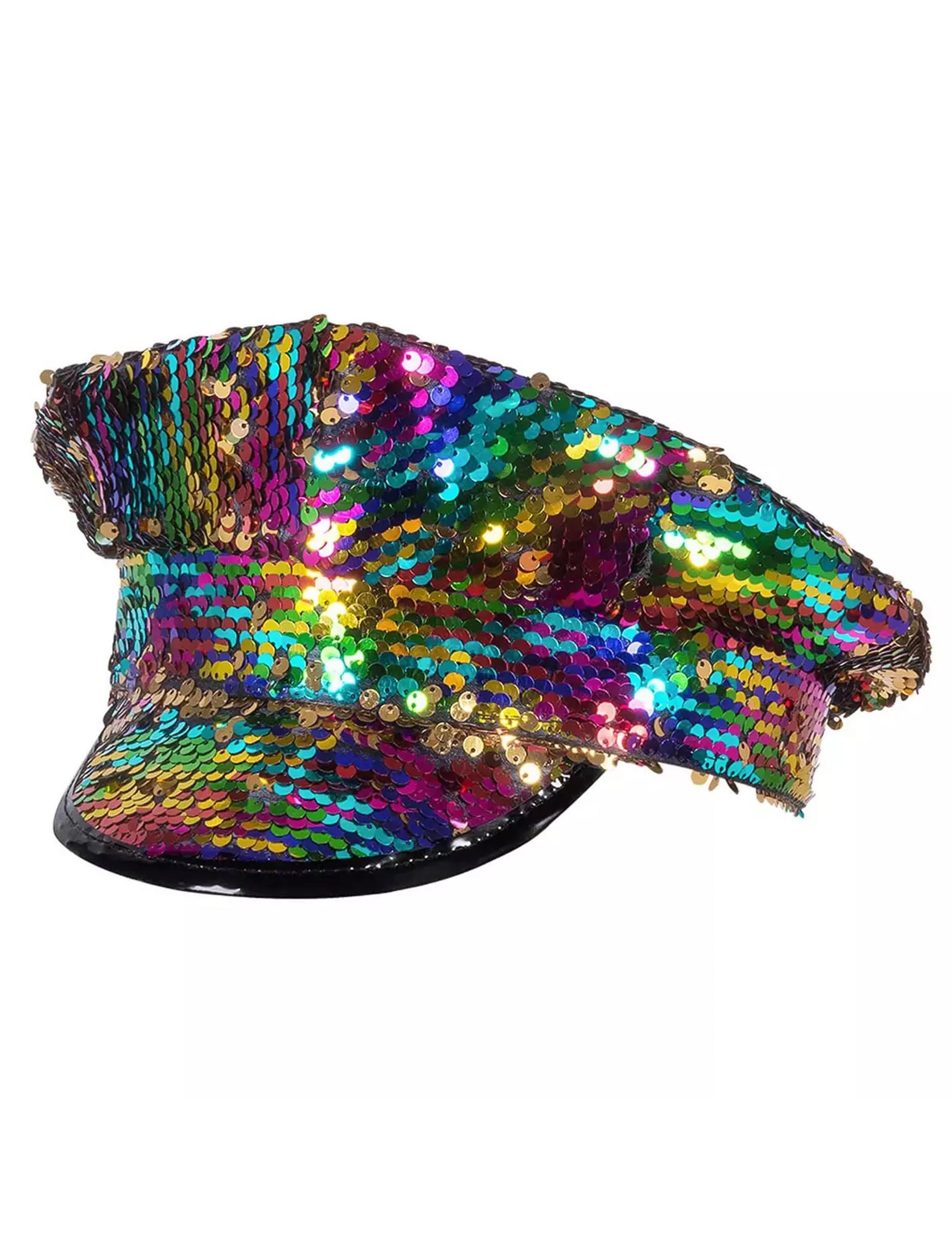 Această șapcă reversibilă a capacului curcubeului și aurul este pentru adulți. Este curcubeu și auriu în culori, cu fațete oglindă de orice culoare, astfel încât toți cei din jurul tău să te poată vedea de departe! Nu veți trece neobservat cu această șapcă la modă și distractivă în timpul unei seri de discotecă sau pentru o seară de temă!