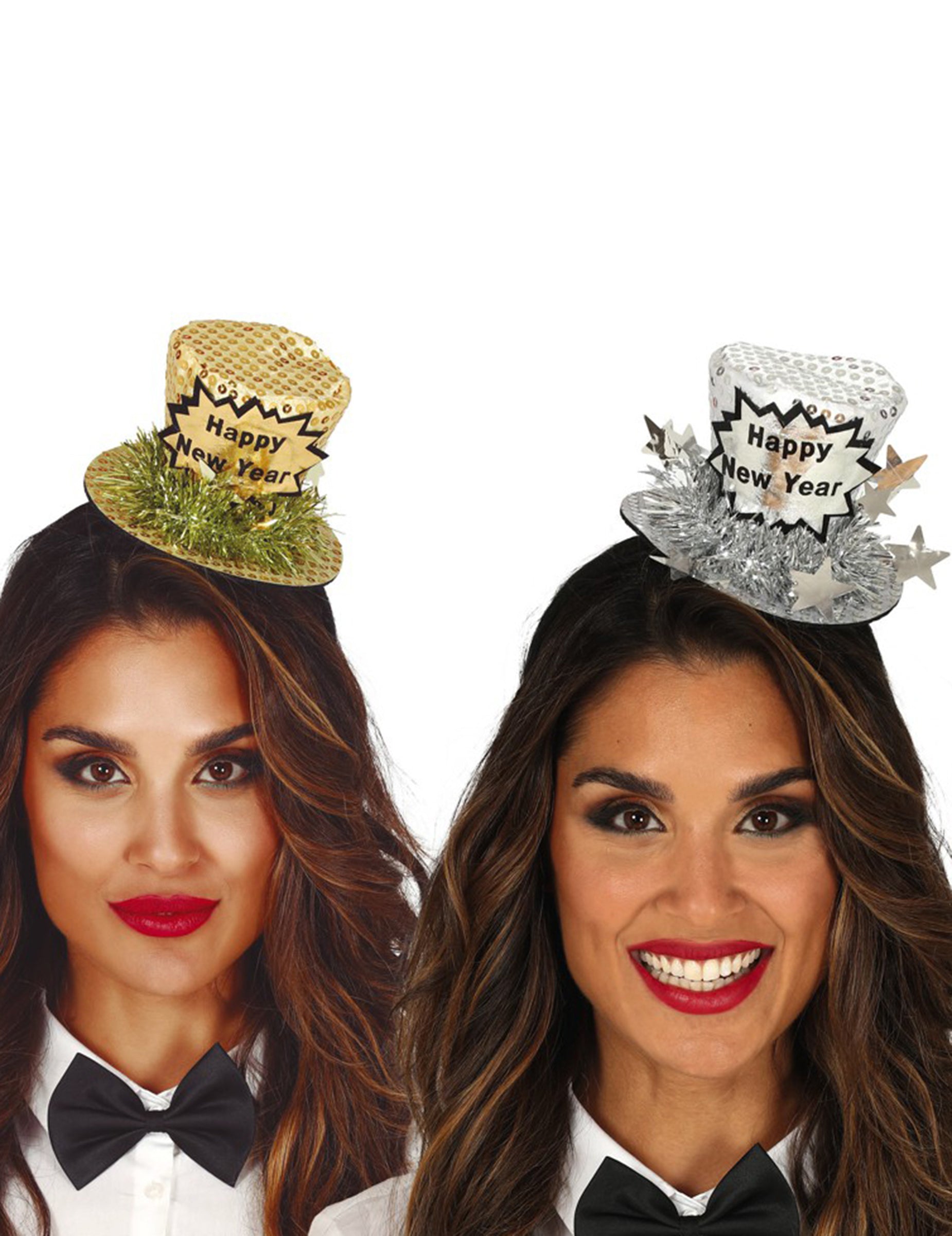 Această pălărie de pălărie de Anul Nou fericit este pentru adulți. Are o formă originală și a lucrat cu inscripția „Happy Anul Nou”. Astfel, veți primi o pălărie cu o culoare aleatorie, fie auriu, fie argint. Această mini pălărie va fi perfectă pentru a -ți completa ținuta în timpul noului an cu cei din jurul tău!