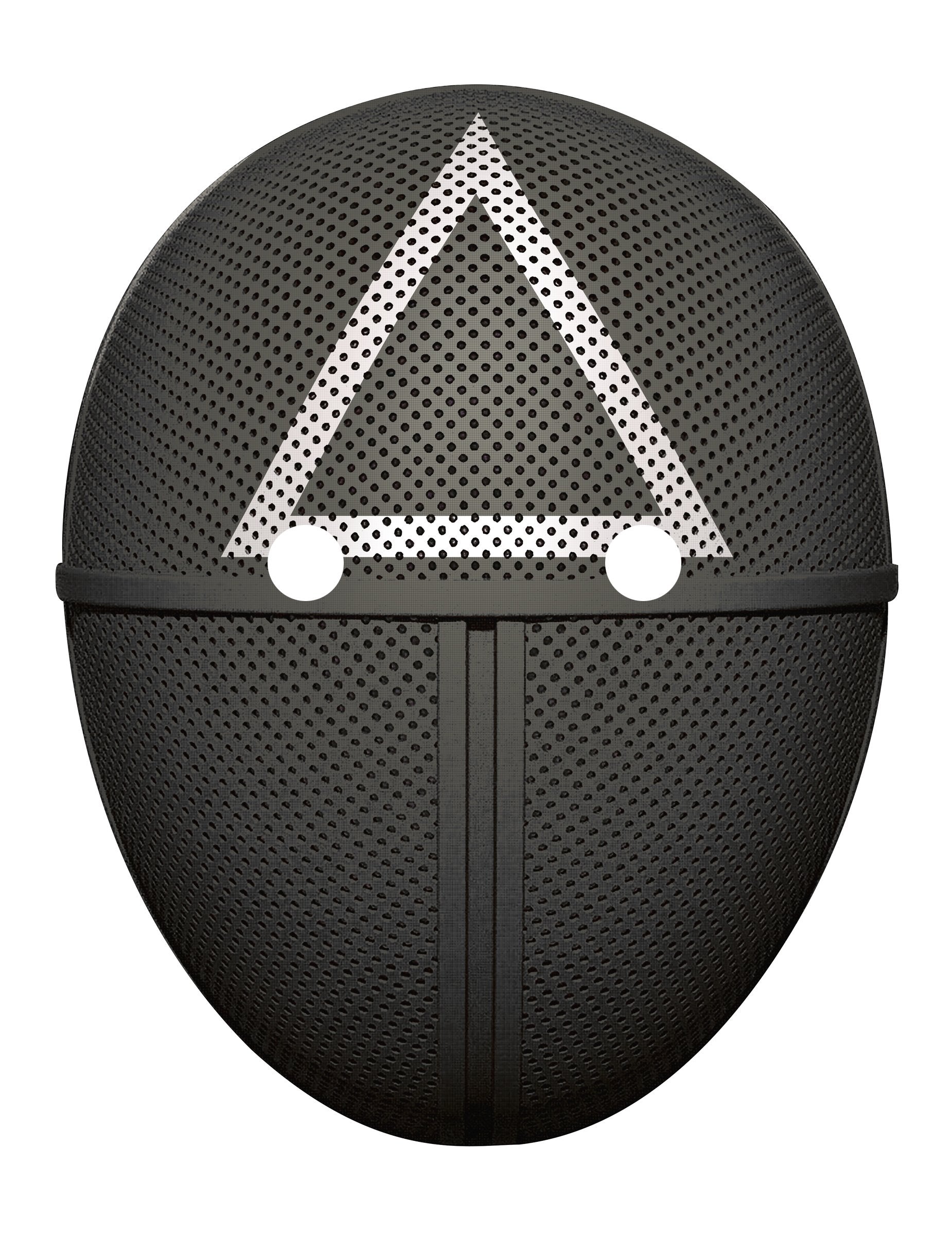 Această mască de pază din triunghi este din carton. În formă ovală, masca este plată și neagră cu un gradient gri. Este decorat cu un desen în formă de triunghi alb pe frunte. Joacă Garda de jocuri din triunghi din seria ta preferată cu această mască cu ocazia serii tale de Halloween!