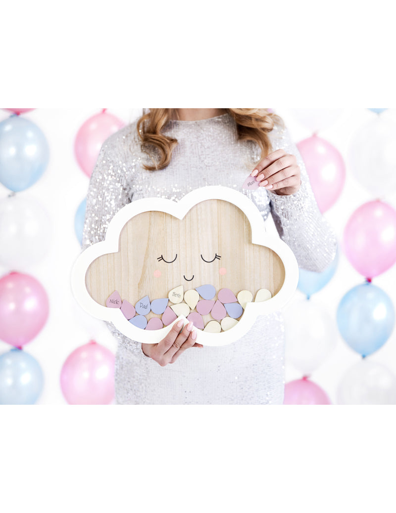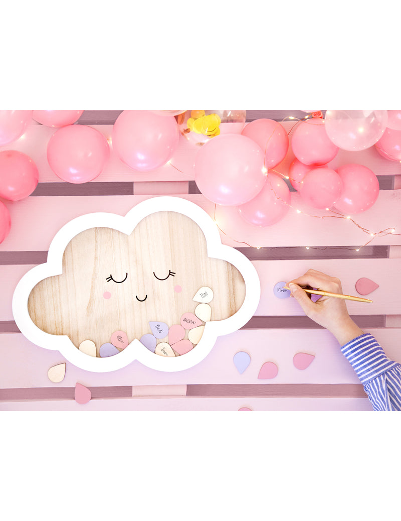 Carte de oaspeți din lemn în formă de nor, 43 x 30 cm cu 30 de picături