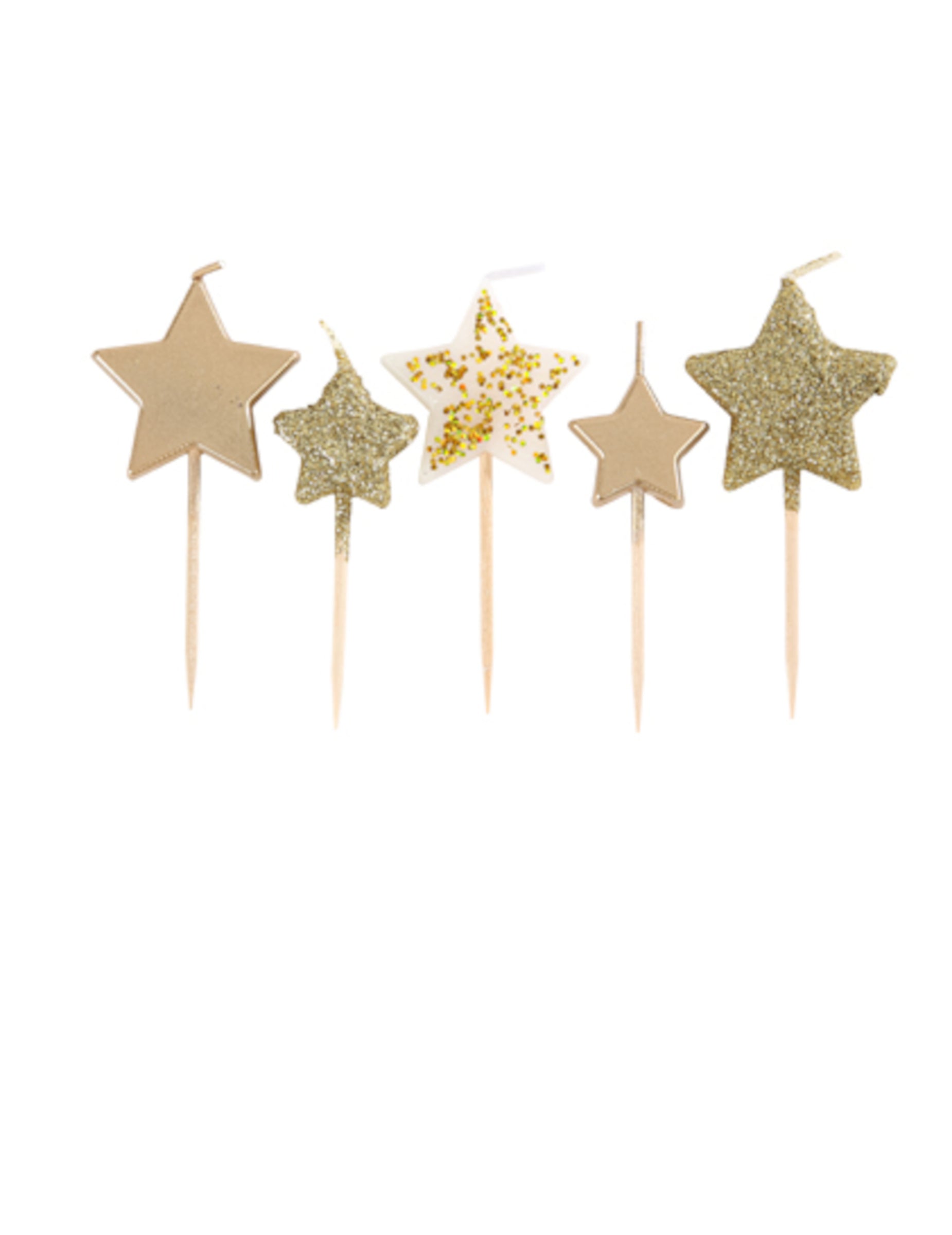 5 lumânări în formă de stea pe un gradient auriu, alege 7 cm paiete