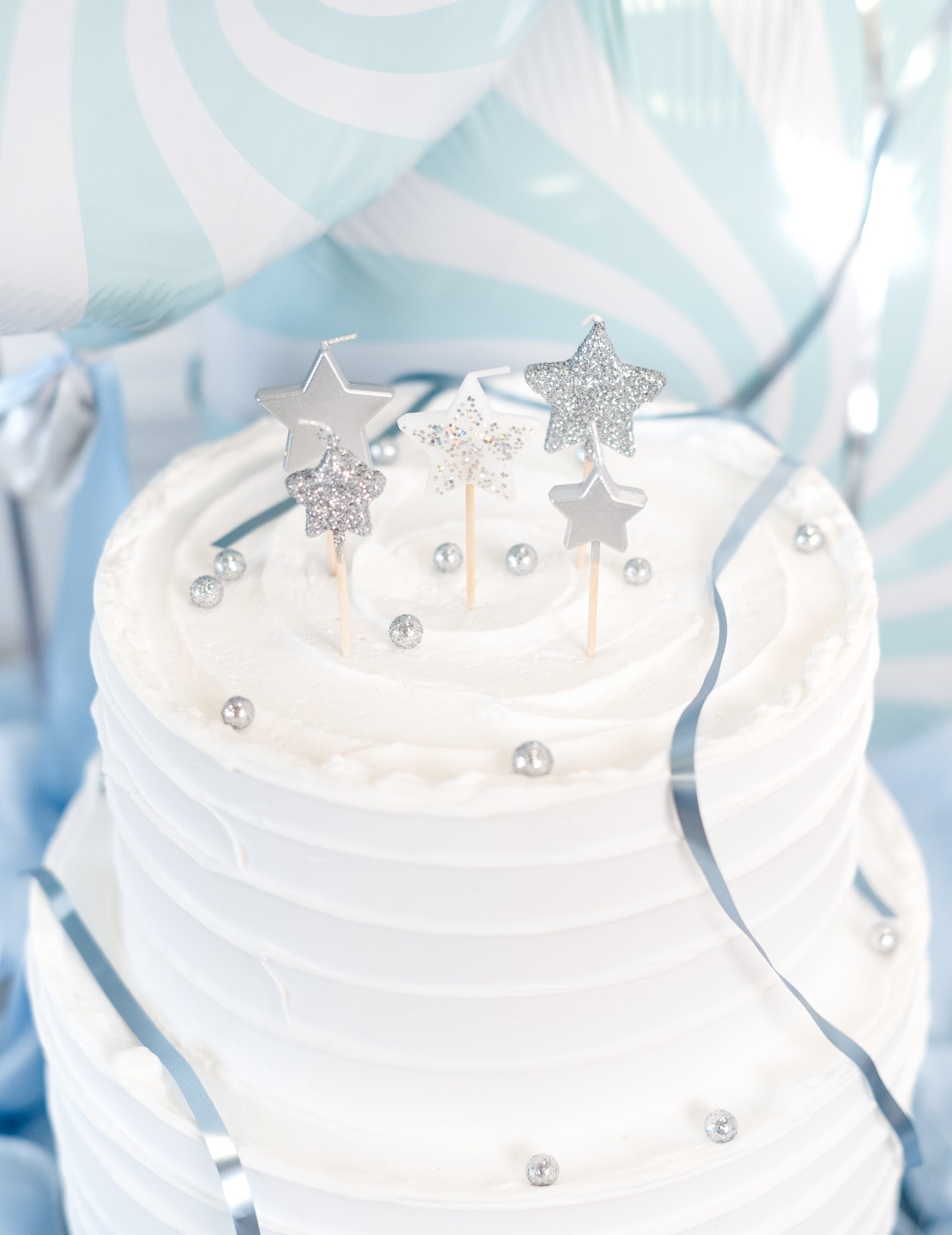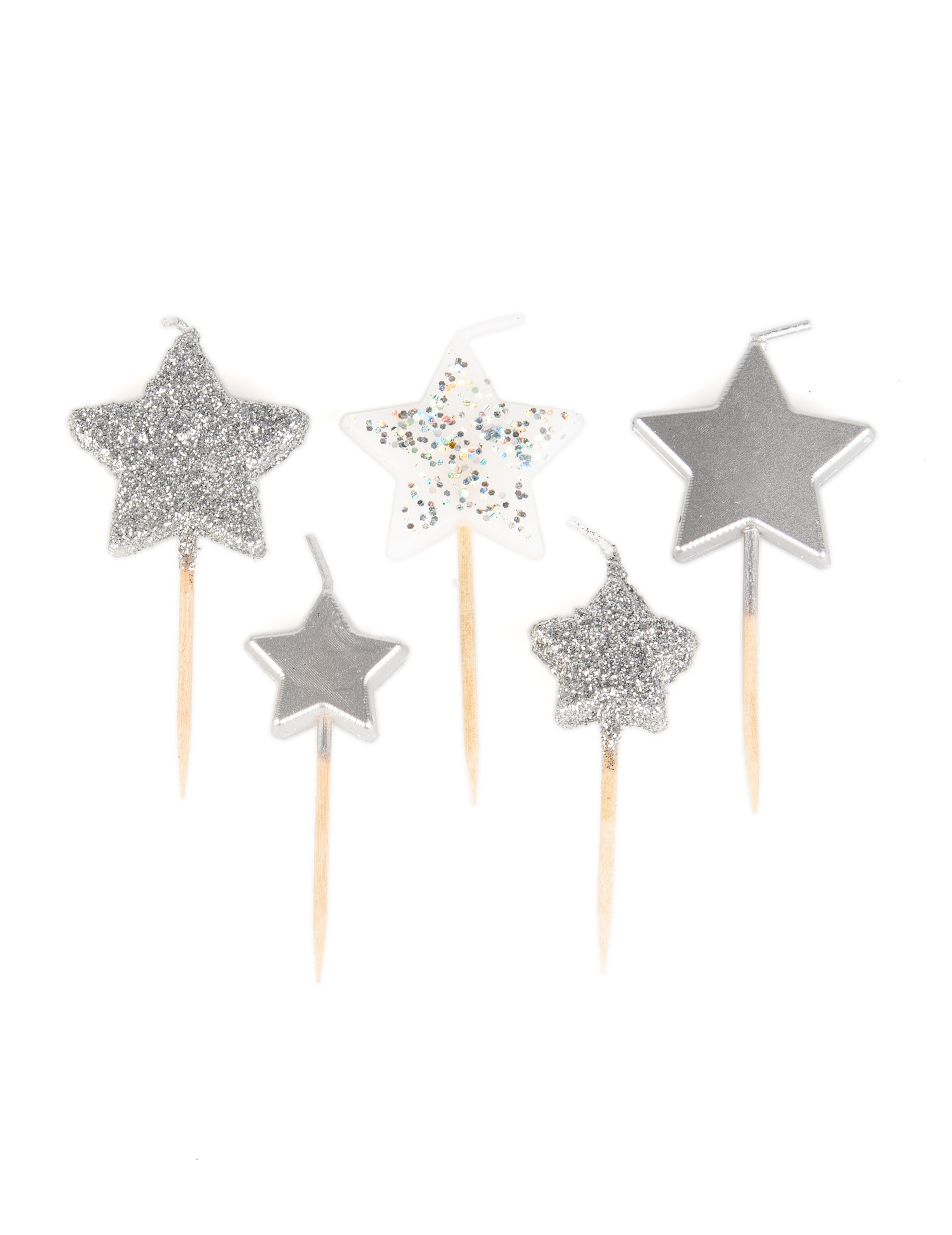Apportez de l'éclat à votre gâteau avec ce lot de 5 bougies sur pic mesurant environ 7 cm. Arborant une forme d'étoiles blanches et argentées, elles sont recouvertes de fines paillettes scintillantes. C'est l'accessoire idéal pour célébrer un anniversaire magique avec des bougies pailletées originales.