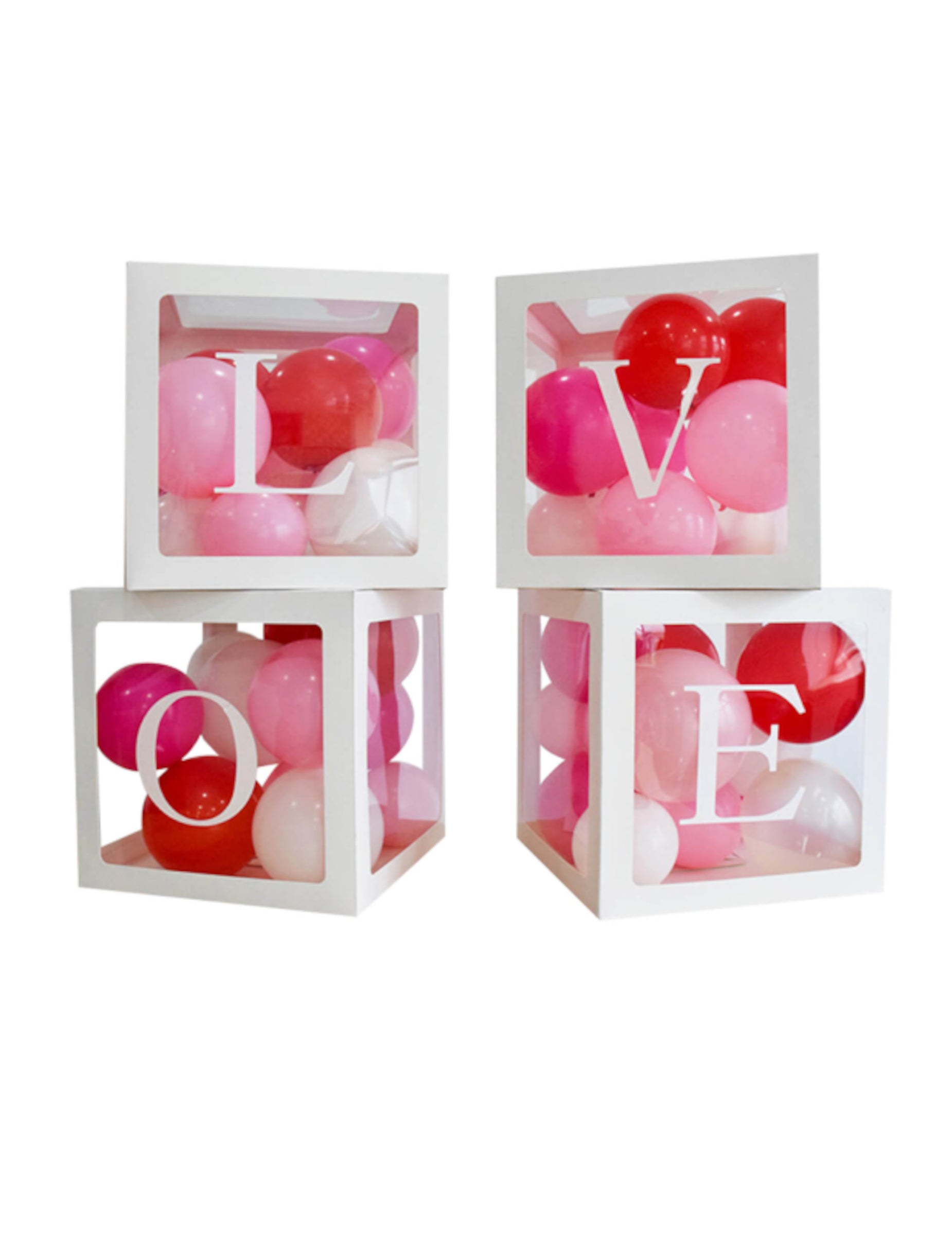 Fă-ți petrecerea cu adevărat specială cu acest set de 4 cuburi de baloane afișând dimensiunile de 30 cm. Aceste cutii de carton cu margini albe sunt decorate cu literele care formează cuvântul dragostePersonalizați-le adăugând baloane colorate în interior pentru un efect vizual unic. cuburi de baloane sunt perfecte pentru decorare căsătorie sau pentru a marca Ziua Îndrăgostiților.