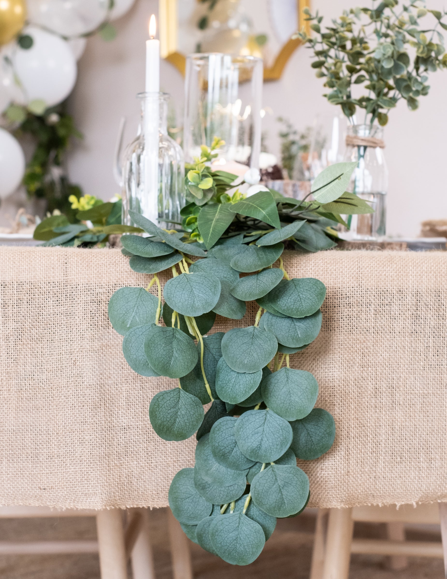 Adaugă o notă de natură evenimentului tău cu acest produs ghirlandă 2 metri lungime. Împodobită cu frunze de eucalipt de un verde intens, este ideală pentru decorarea pereților sau pentru a servi ca un elegant covor de masă. ghirlandă de eucalipt este accesoriul perfect pentru a îmbunătăți decorarea căsătorie, de botez sauziua de naștere cu stil.