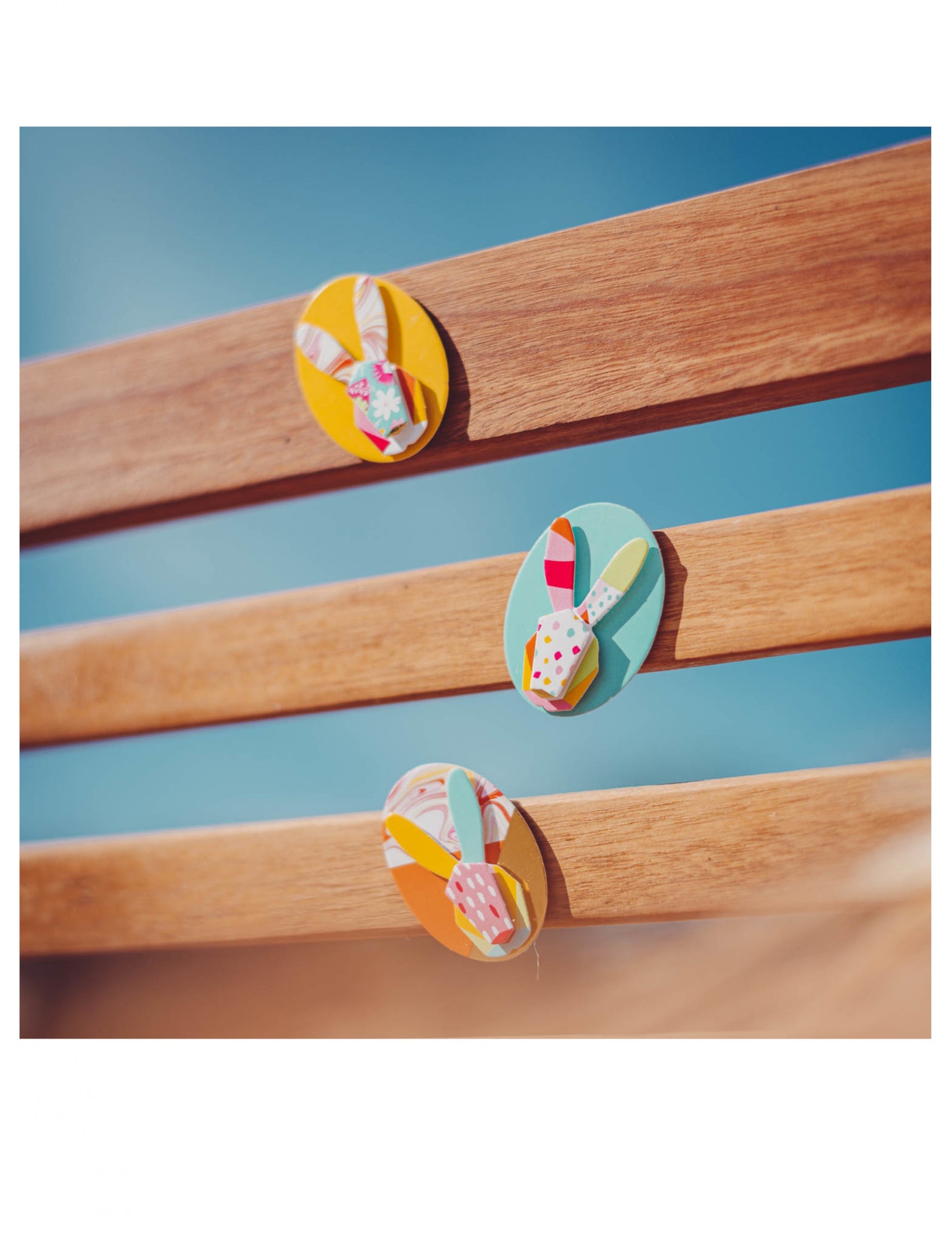 Adăugați o notă de fantezie creațiilor dvs. cu acest set de 6 autocolante ovale cu dimensiunile de aproximativ 4,5 x 3 cm. Aceste elemente vizuale înfățișează capete de iepure într-un stil grafic și colorat, ideale pentru personalizarea ambalajelor. autocolante de iepure Originalele sunt accesoriul esențial pentru a vă îmbunătăți pungile de bomboane sau pentru a vă perfecționa Decorațiuni de Paște cu eleganță.
