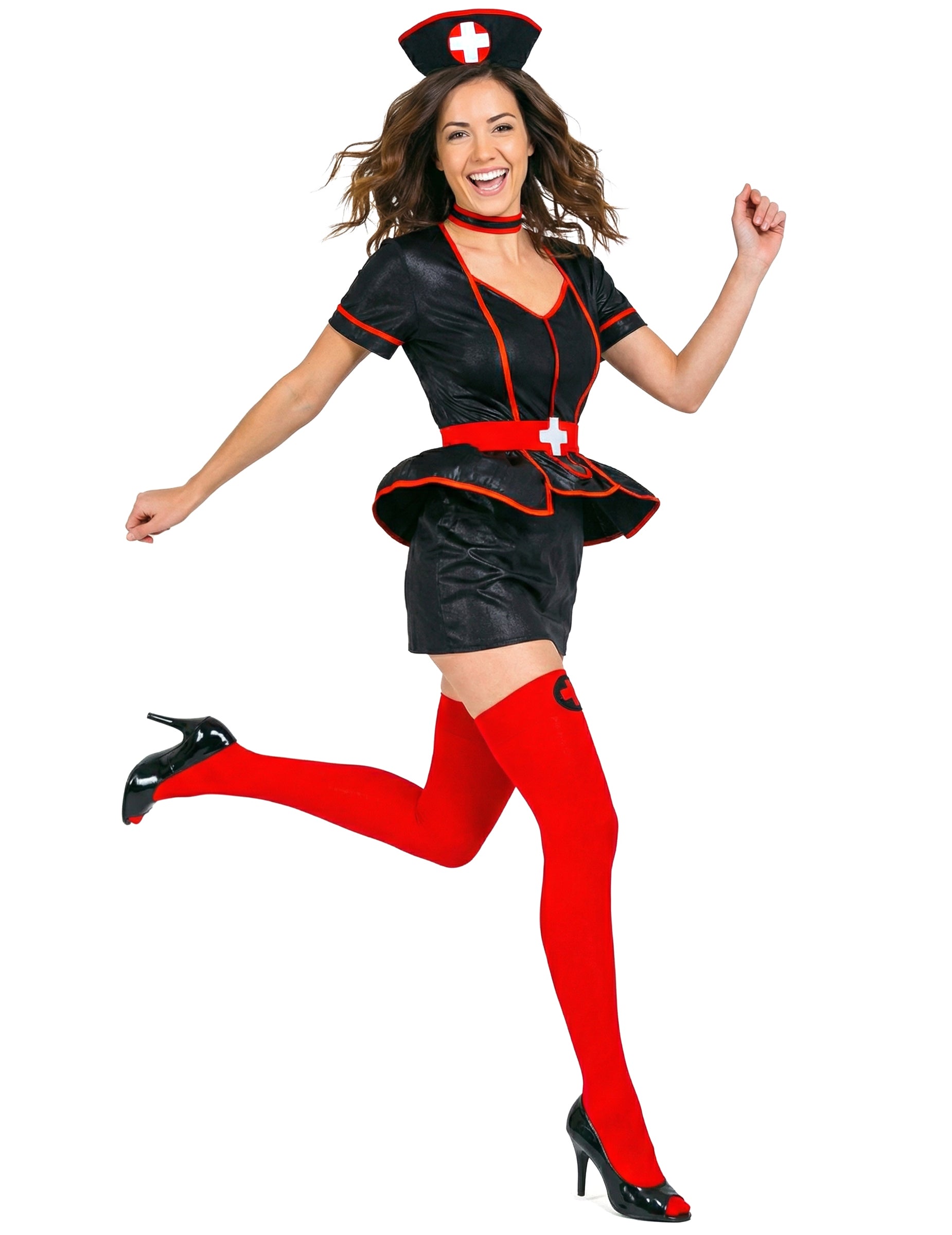 Acest costum de asistentă neagră este destinat femeilor. Include o rochie, o șapcă, o centură și un gât. Rochia scurtă este neagră și roșie în general. Perfect îndoit de silueta ta, această rochie de asistentă are contururi roșii sunt fundal negru și va fi ușor închisă cu un fermoar central. Centura îți va perfecționa silueta, culoarea roșie cu o cruce albă în centru. Coafura asistentei negre are granițe roșii, precum și logo -ul medical în formă de încrucișare albă. În cele din urmă, gâtul este în culorile întregului, roșu și negru. Acest costum de asistent medical va fi perfect pentru seara ta de Halloween sau pentru carnaval!