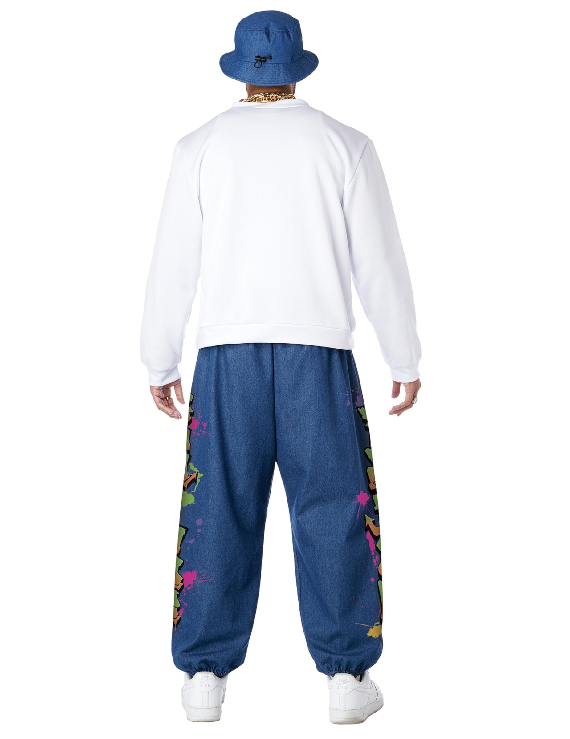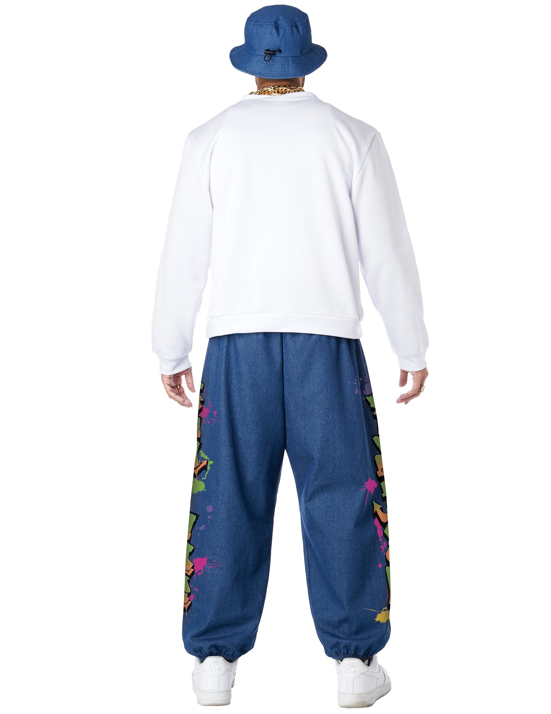 Acest costum hip hop este destinat bărbaților și este format dintr -un top, pantaloni și o pălărie. Partea de sus este alb și are mâneci lungi. Este decorat cu un imprimeu de graffiti verde cu desenul unei radiocasete. Partea de jos arată ca pantaloni de jogging albastru cu graffiti verzi și portocalii pe părțile laterale. Este strâns la glezne. Pălăria lui Bob completează deghizarea. Este tipărit albastru cu un cangur alb. Reclong în anii 90 cu acest costum de hip hop în timpul unei teme tematice sau cu ocazia Carnavalului!
