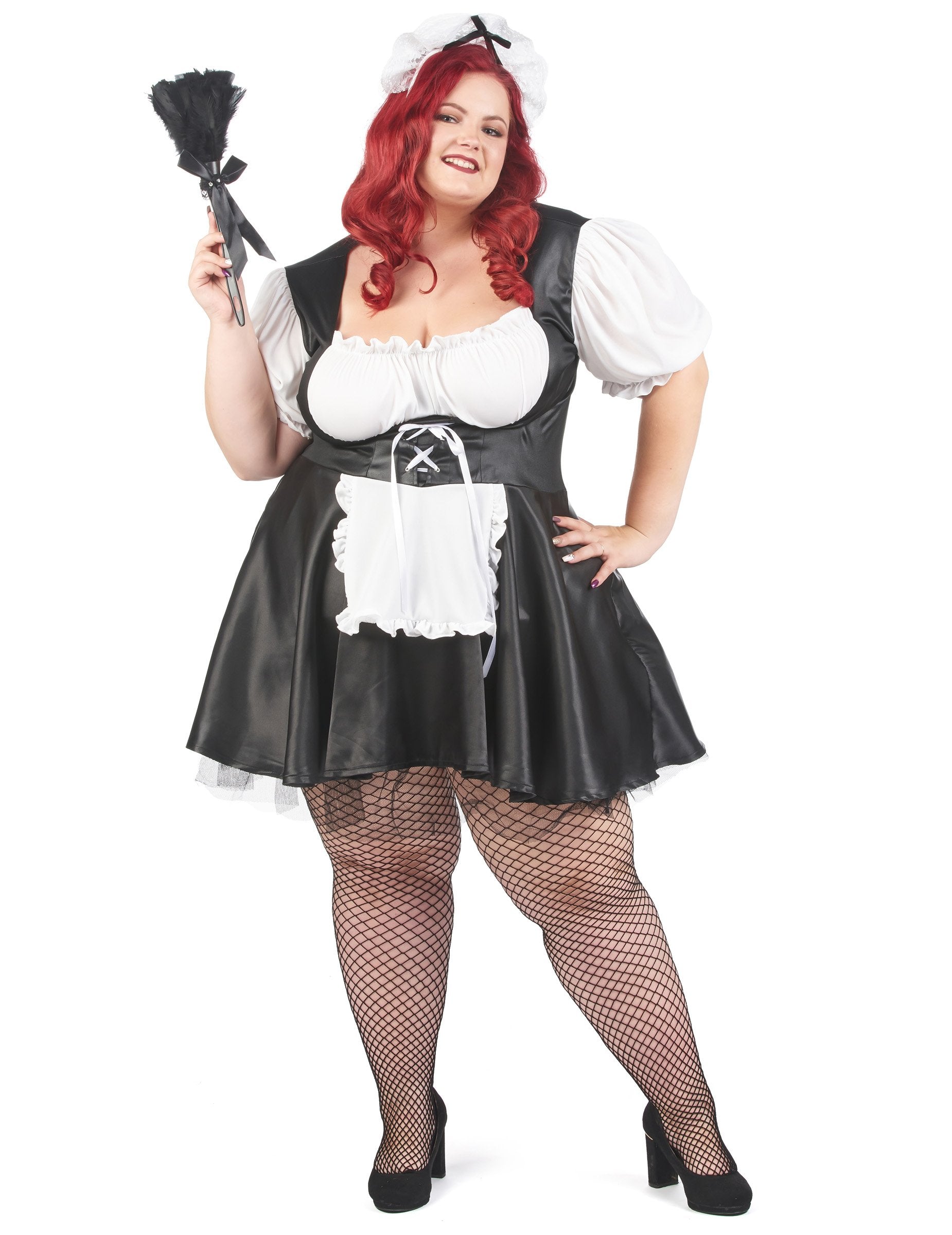 Acest costum mare de dimensiuni soubret este pentru femei. Este format dintr -o rochie, un șorț, un petticoat și o bandă. Rochia costumului are o culoare neagră, însoțită de mâneci scurte și albe. Lacingul central este, de asemenea, de culoare albă. O petticoat va completa rochia, decorată de șorțul său alb. Banda de culoare albă colorată va perfecționa întregul cu dantela mică. Completează -ți costumul de servitoare pentru carnaval sau pentru seara ta sexy!