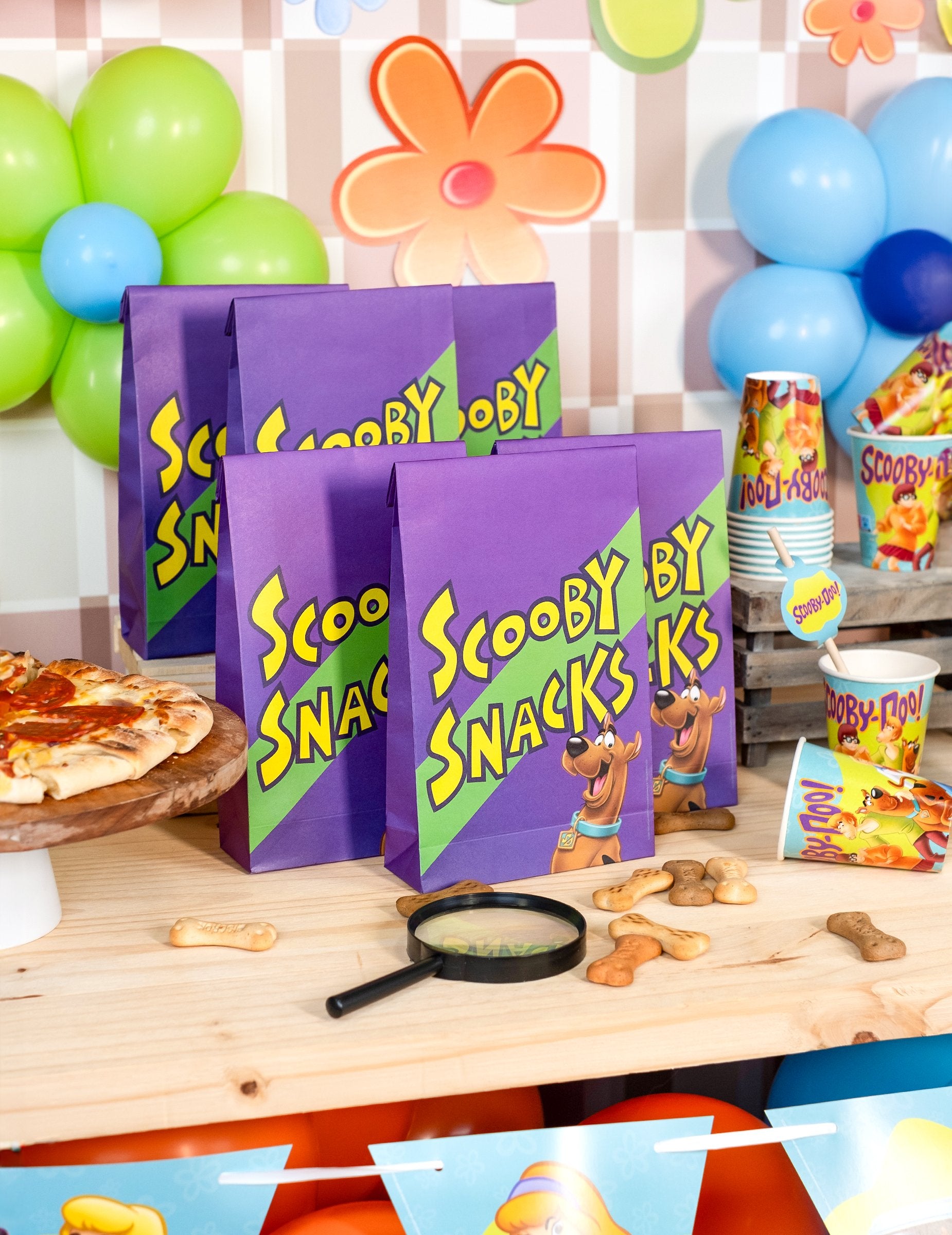 Sub licență oficială Scooby-Doo, acest set conține 8 pungi cadou. Fabricate din hârtie Kraft, sunt însoțite de 8 autocolante potrivite. Fiecare pungă măsoară aproximativ 30 x 15 cm, iar autocolantele poartă celebrul logo Scooby-Doo. Personajul emblematic al Scooby-Doo este, de asemenea, tipărit direct pe pungi. Aceste genți cadou vor fi un plus ideal pentru a vă îmbunătăți decorarea în timpul unei petreceri de naștere pe tema Scooby-Doo!