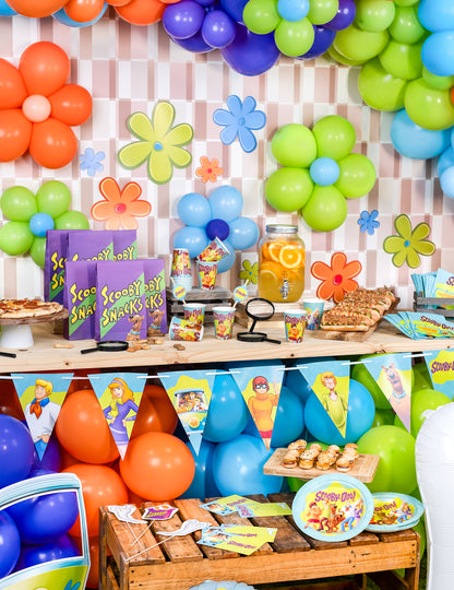 Acest Pennant Garland de carton sub licența oficială Scooby-Doo măsoară 2m lungime. Veți găsi imprimeurile diferitelor personaje ale Scooby-Doo pe pennante albastre și verzi. Această ghirlandă va fi ideală pentru a-ți completa decorarea Scooby-Doo!
