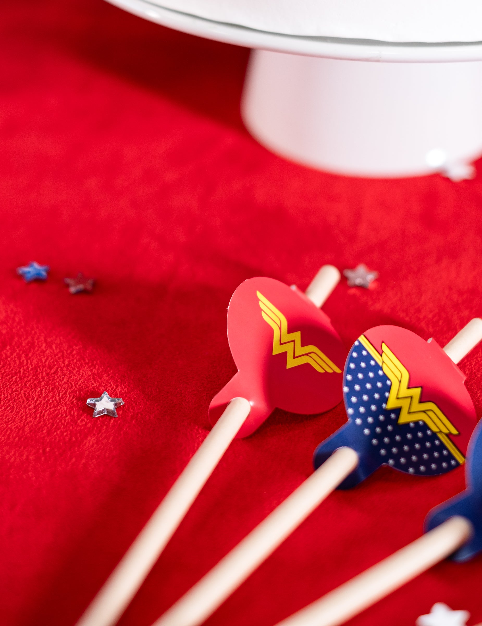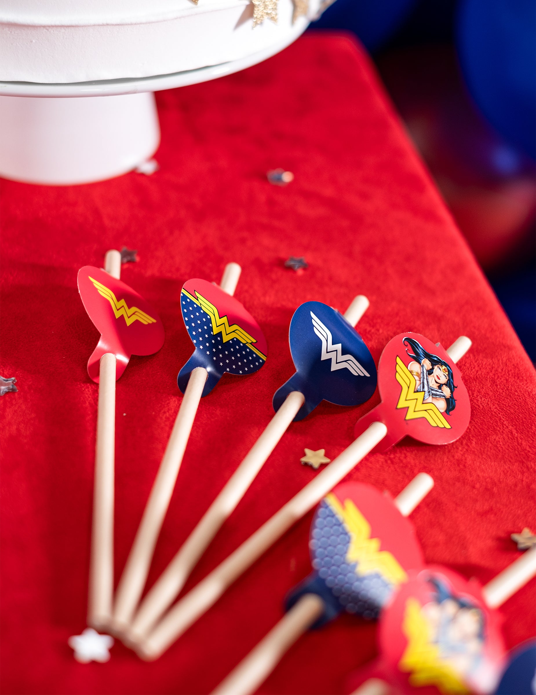 Aceste paie vor fi perfecte pentru a completa decorarea mesei pentru o Aniversarea Wonder Woman™ !