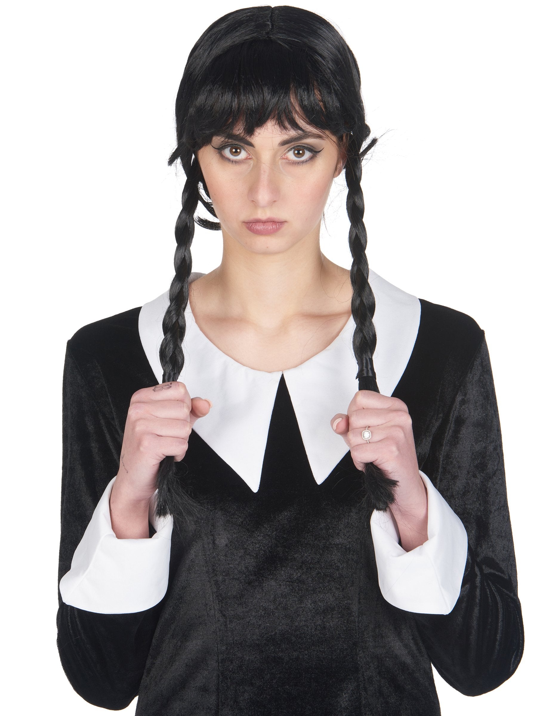 Acest costum de școală gotică este destinat femeilor. Este o rochie de lungime medie, cu un guler alb. Rochia este neagră și făcută într -o țesătură cu efect de catifea. Puteți înfrumuseța această deghizare cu o perucă și cizme de împletitură neagră pentru un stil 100% gotic. Optați pentru acest costum perfect de școală gotică pentru o seară cu prietenii în timpul Halloween -ului!