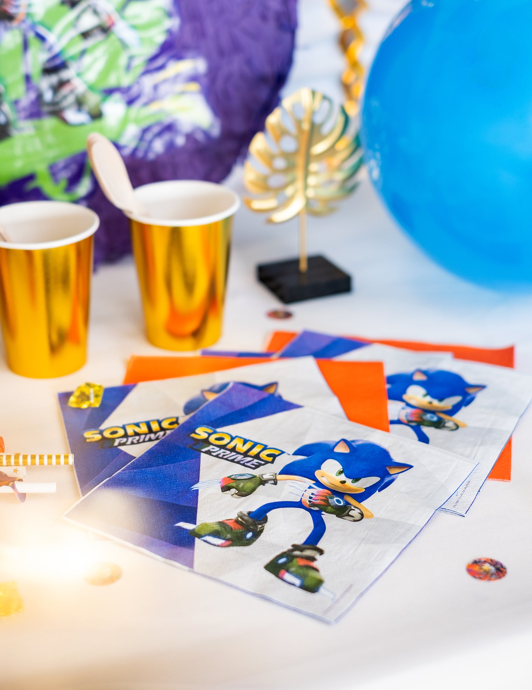 Aceste prosoape de hârtie de 33x33 cm sunt decorate cu celebrul erou al Sonic Prime. Fiecare dintre prosoape prezintă Sonic în mișcare completă pe un fundal geometric cu nuanțe albastre și violet, cu detalii minuțioase și culori vibrante care adaugă o notă de energie decorului mesei. Vor fi perfecte pentru o petrecere de naștere pe tema jocurilor video sau pentru pasionații de sonici.