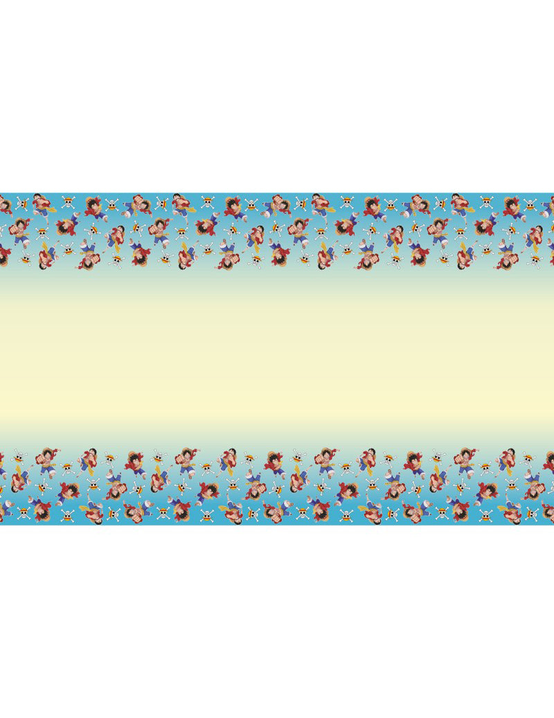 Această masă de hârtie reciclabilă este sub licență oficială One Piece. Măsoară aproximativ 136 cm lățime și 228 cm lungime. Centrul de față este bej, iar marginile sunt albastre cu o mulțime de Luffy! Această masă de masă va fi perfectă pentru a crea o masă frumoasă la o zi de naștere de la o petrecere pe tema Manga!