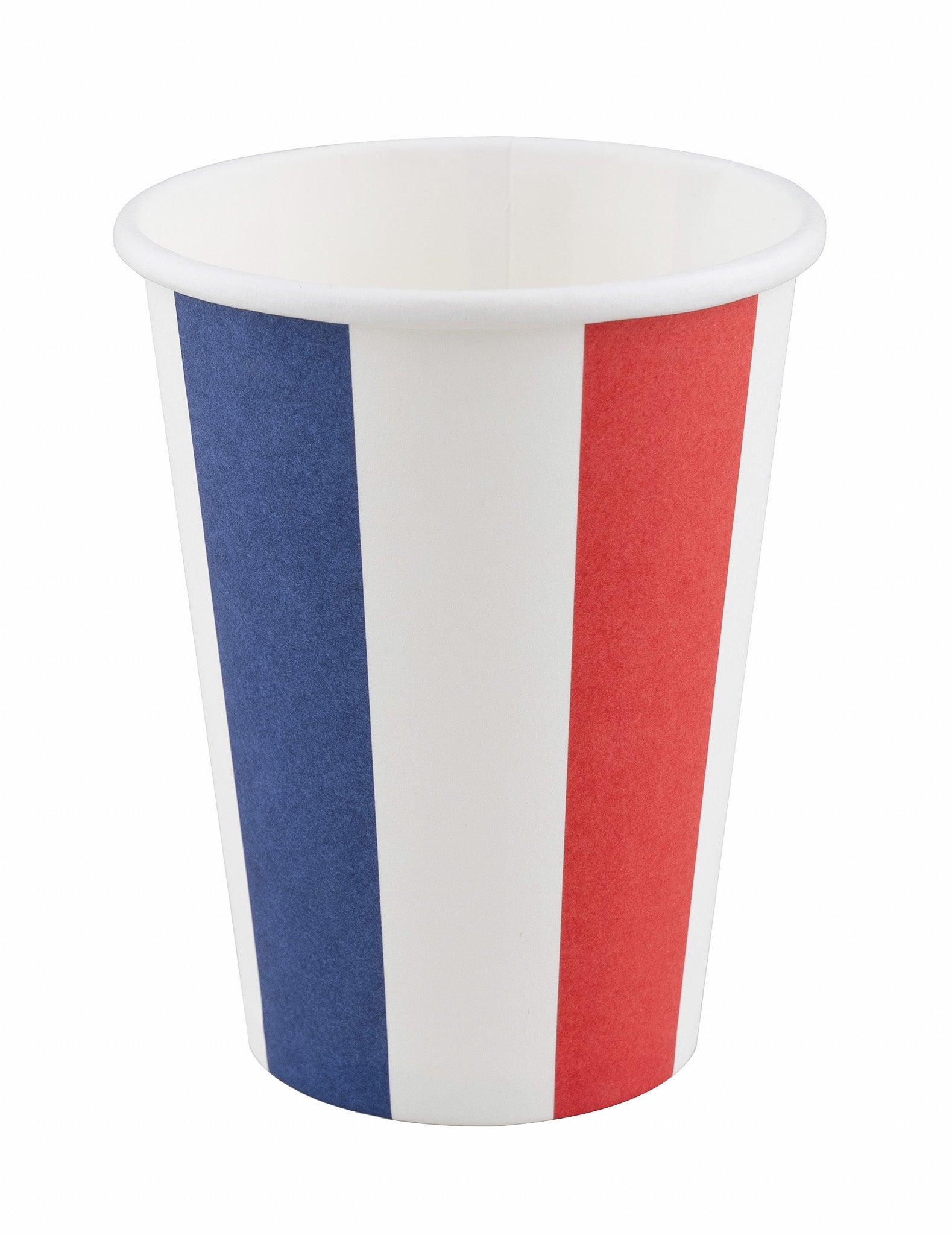 Aceste căni de carton sunt vândute la 8. Au o capacitate de aproximativ 250 ml și sunt în culorile steagului francez, alb și roșu francez. Aceste pahare vor fi perfecte pentru o seară sau un eveniment sportiv francez!