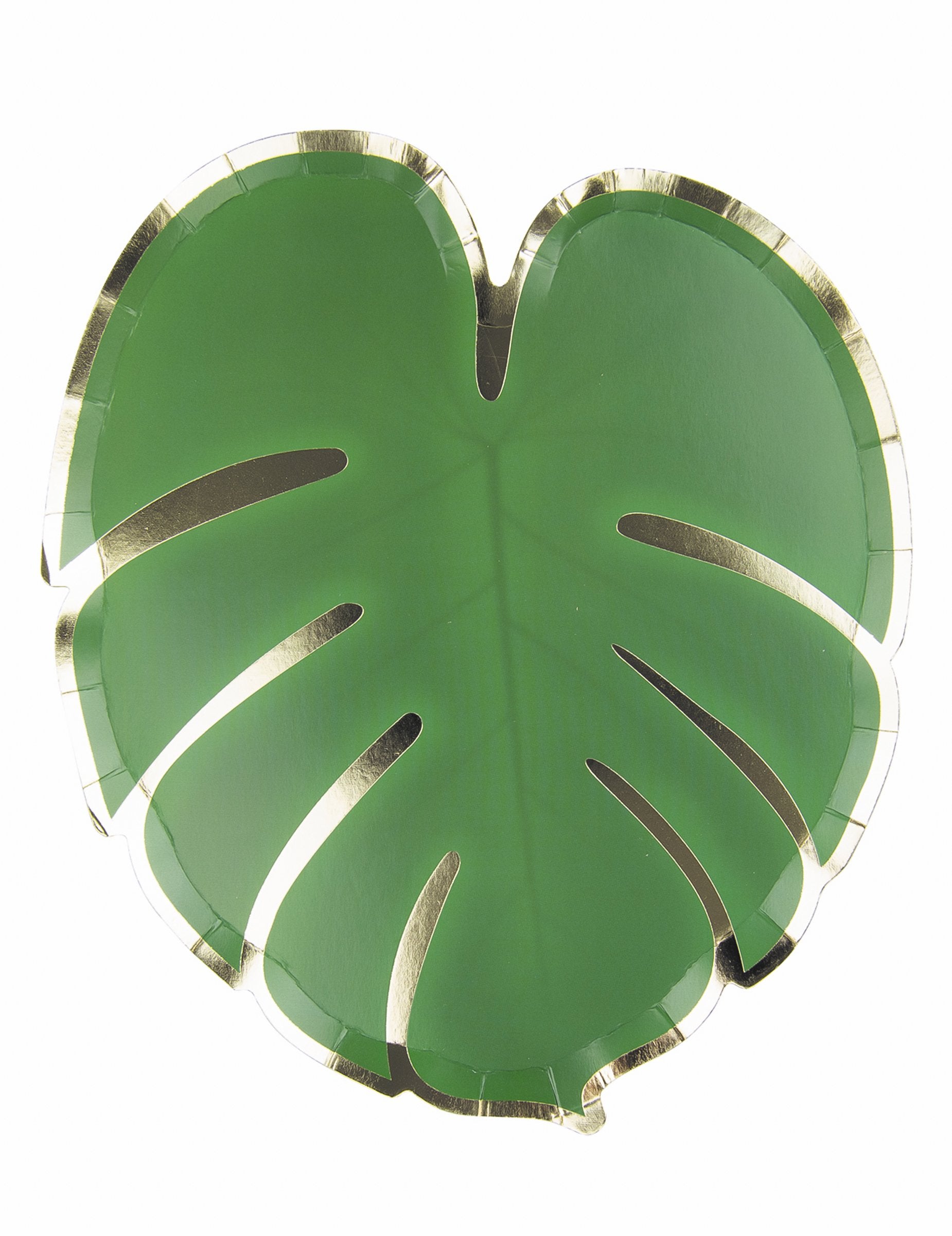 Aceste plăci tropicale sunt vândute în multe 8 și măsoară aproximativ 23 cm. În forma unei foi tropicale, acestea sunt de culoare verde cu un contur auriu. Aceste plăci sunt în Cato. Mergeți într -o aventură pentru ziua de naștere cu acest lot de plăci tropicale!