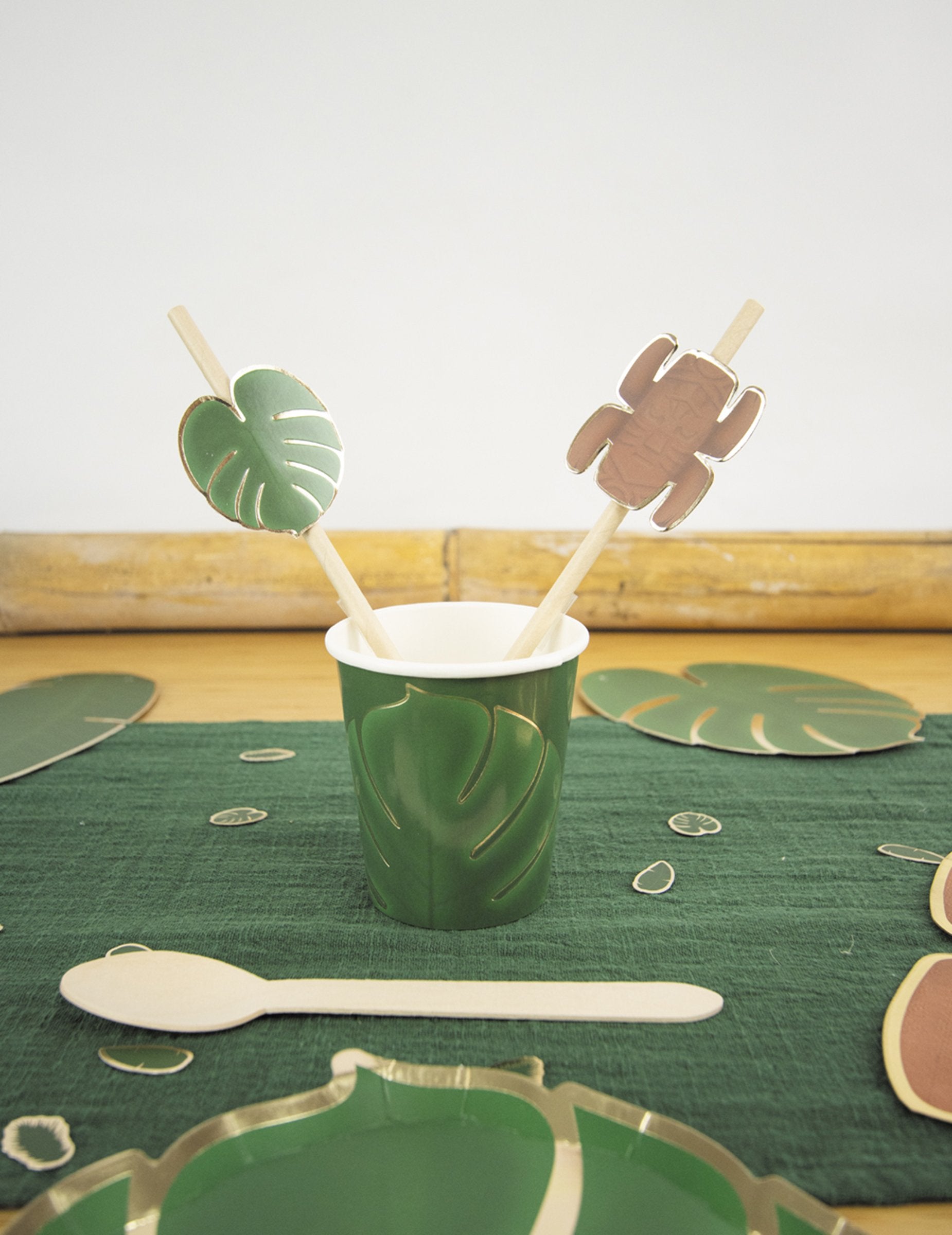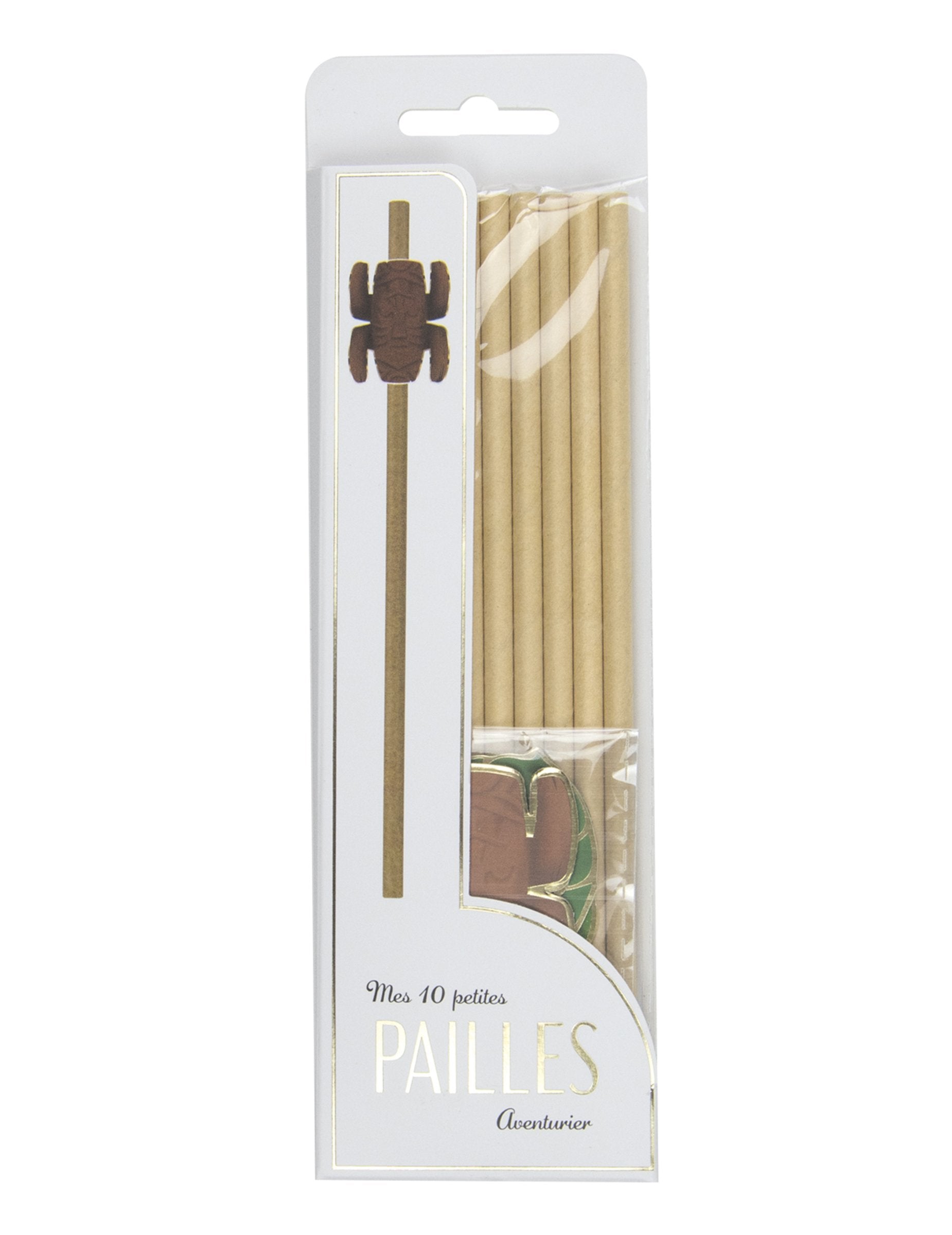 Aceste paie totem sunt vândute cu un lot de hârtie de 10. Kraft, ele măsoară aproximativ 18 cm, iar lotul are 5 paie cu un medalion totem și 5 paie cu un medalion de frunze tropicale. Aceste paie vor fi perfecte pentru ziua ta!