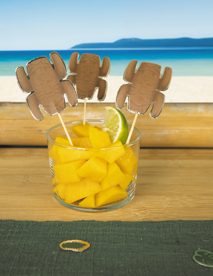 Aceste vârfuri de totem sunt vândute cu un lot de 10. TOTEM -SLAPED, ele măsoară aproximativ 8 cm și sunt confecționate din lemn de bambus netratat. Acest set de vârfuri totem va fi perfect pentru a vă prezenta aperitiful cu ocazia zilei de naștere!