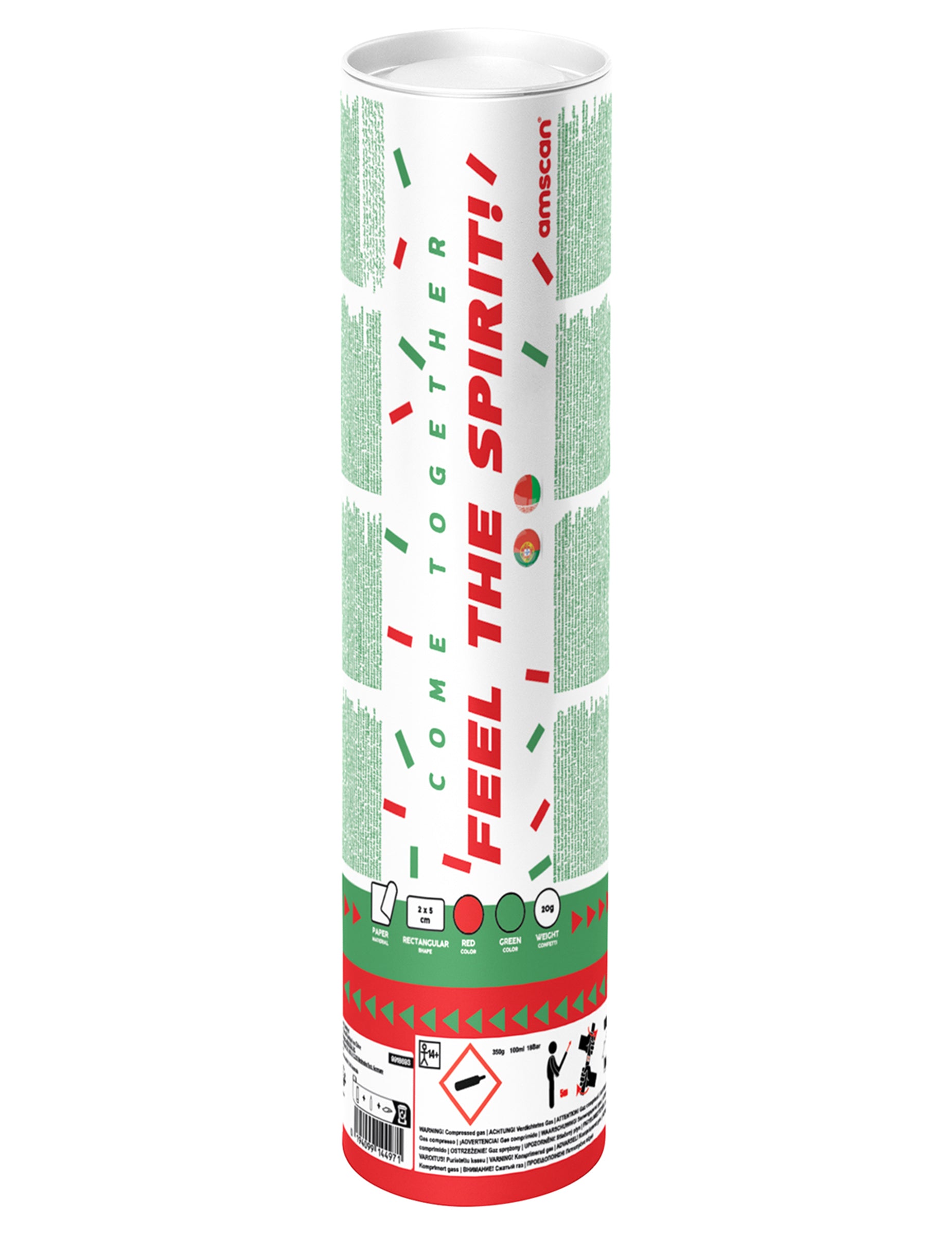 Acest tun de confetti este format din confetti în roșu și verde. Utilizarea sa este simplă, trebuie doar să întoarceți partea de jos a butoiului, astfel încât toate confetti să iasă! Va fi ideal pentru susținerea echipei din Portugalia în timpul unui eveniment sportiv!
