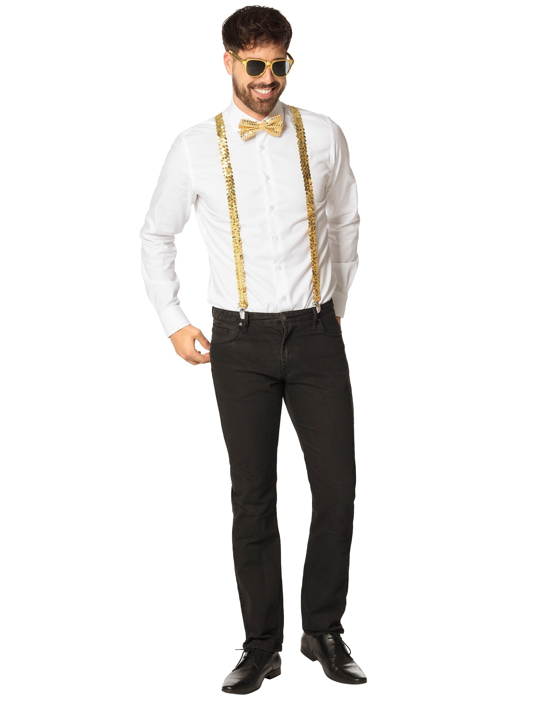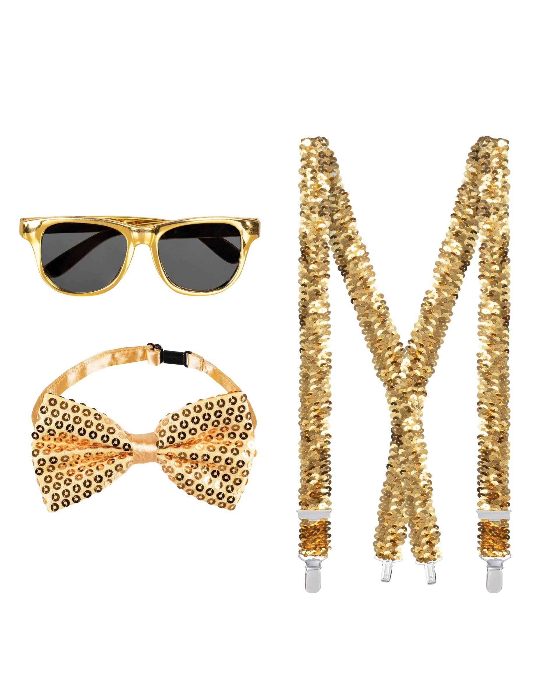 Acest kit accesoriu este destinat adulților în aur în paiete, este format dintr -o papion, o pereche de brevete și o pereche de ochelari. Nodul fluture are o închidere pentru a -l atașa cu ușurință. Ochelarii au o culoare aurii, cu o nuanță închisă. În cele din urmă, bretele sunt reglabile și se vor atașa cu ușurință la pantaloni. Fii chic pentru următorul tău eveniment cu accesorii pentru kit cu paiete de aur!