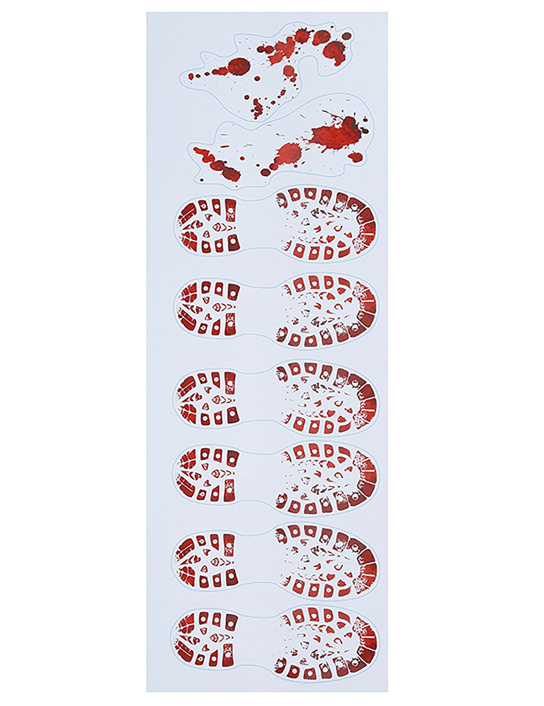 Aceste trepte de sânge sunt adezive sunt furnizate pe două frunze de aproximativ 25 x 70 cm. Fiecare foaie de vinil adeziv are o serie de trepte roșii strălucitoare, simulând sânge proaspăt vărsat. Ușor de aplicat și eliminat, acești adezivi sunt perfecți pentru a crea o atmosferă deranjantă. Folosiți acești pași pentru a adăuga o atingere terifiantă decorației dvs. în timpul sărbătorilor de Halloween.