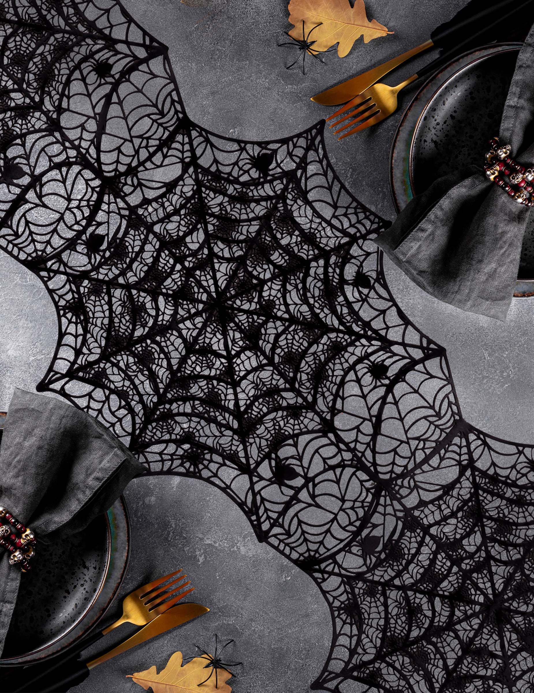 Această pânză de pânză de păianjen are o lățime de aproximativ 34 cm și 46 cm lungime. Fabricat din PVC, are un design web Black Spider. Va fi un decor perfect pentru o masă spectrală ideală pentru seara de Halloween!