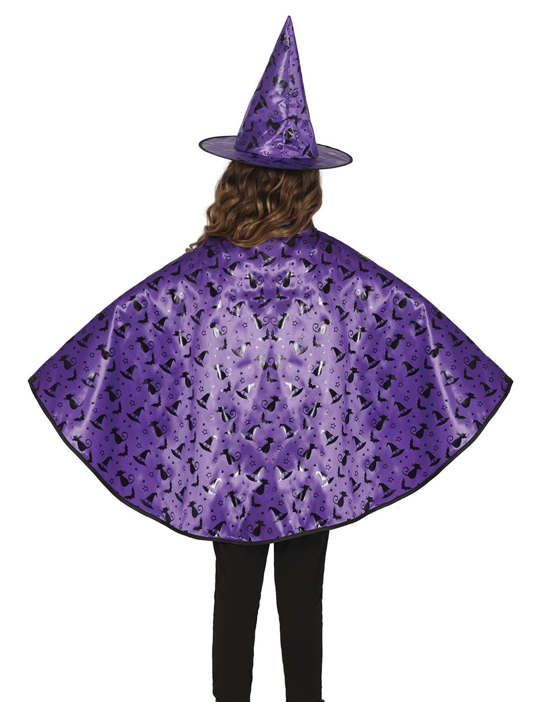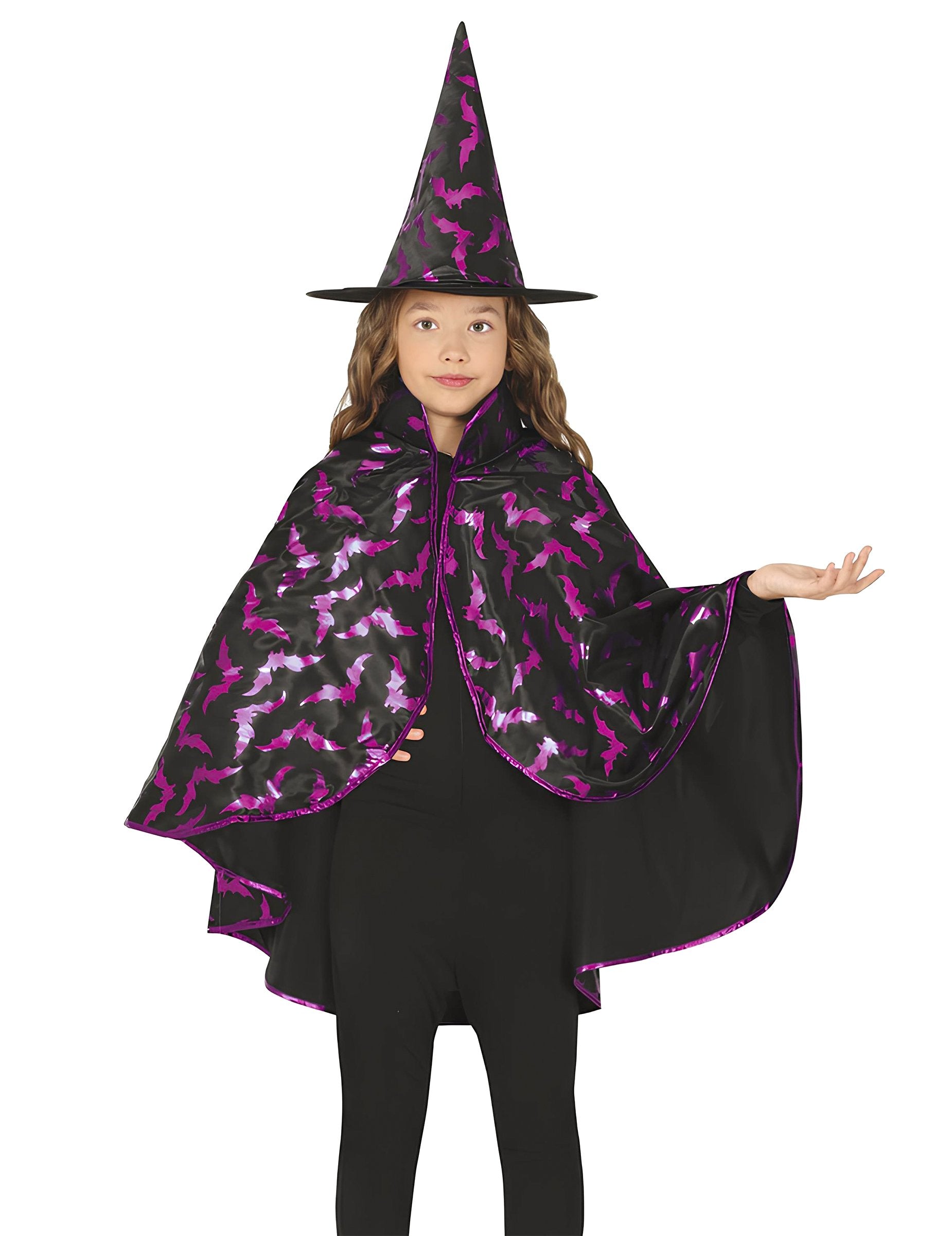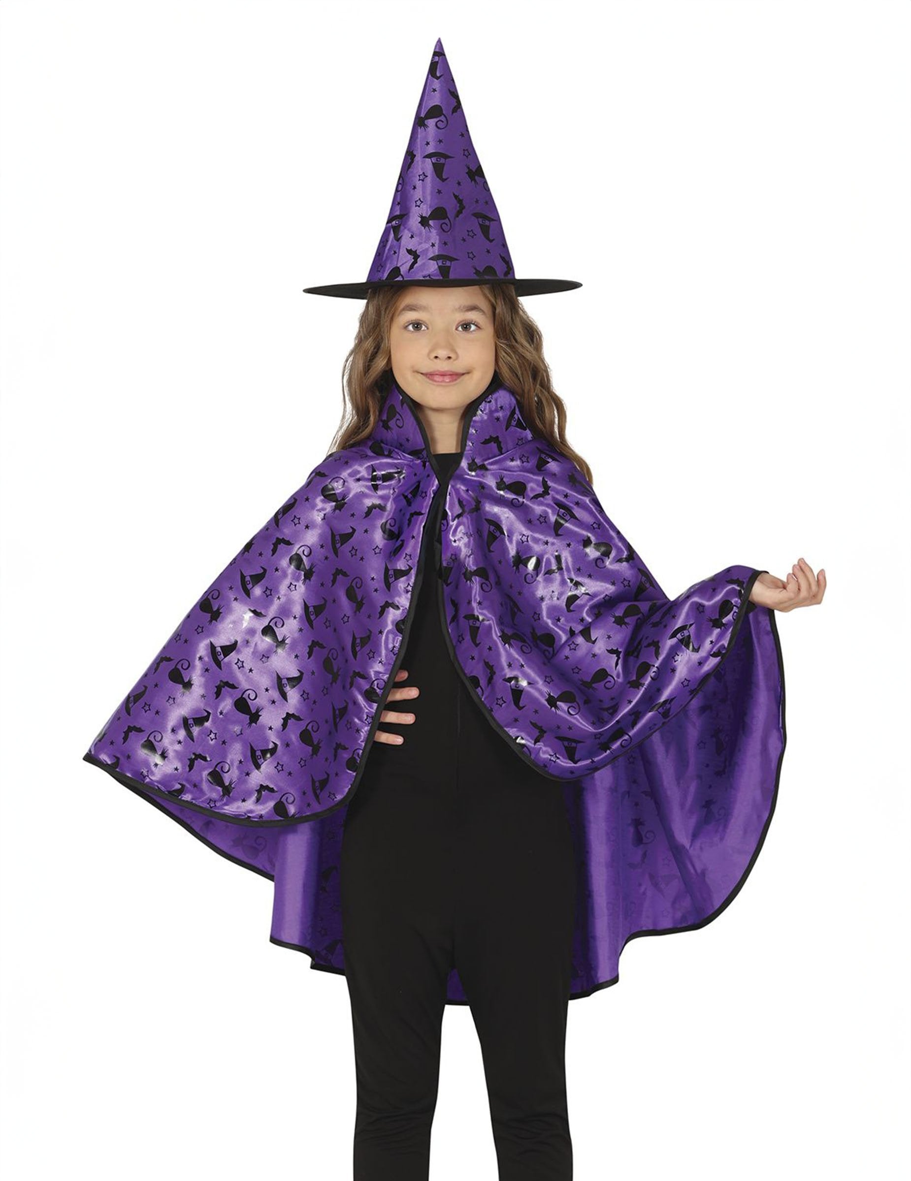 Acest kit de deghizare a vrăjitoarelor pentru copii include o pelerină de 50 cm și o pălărie potrivită, perfectă pentru completarea unui costum de vrăjitoare. Capul, negru cu modele de liliac purpuriu, este ușor închis în jurul gâtului datorită unui fermoar, asigurând un port confortabil. Pălăria, de asemenea neagră cu modele de lilieci, are o formă clasică ascuțită, aducând ultima atingere de deghizare. Cu acest kit de pelerină și pălărie, copilul tău se va putea transforma într -o vrăjitoare elegantă și încântată pentru seara de Halloween.