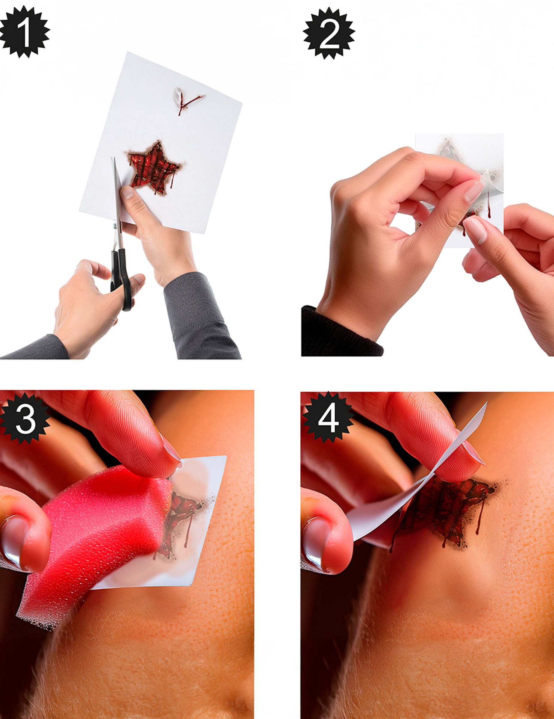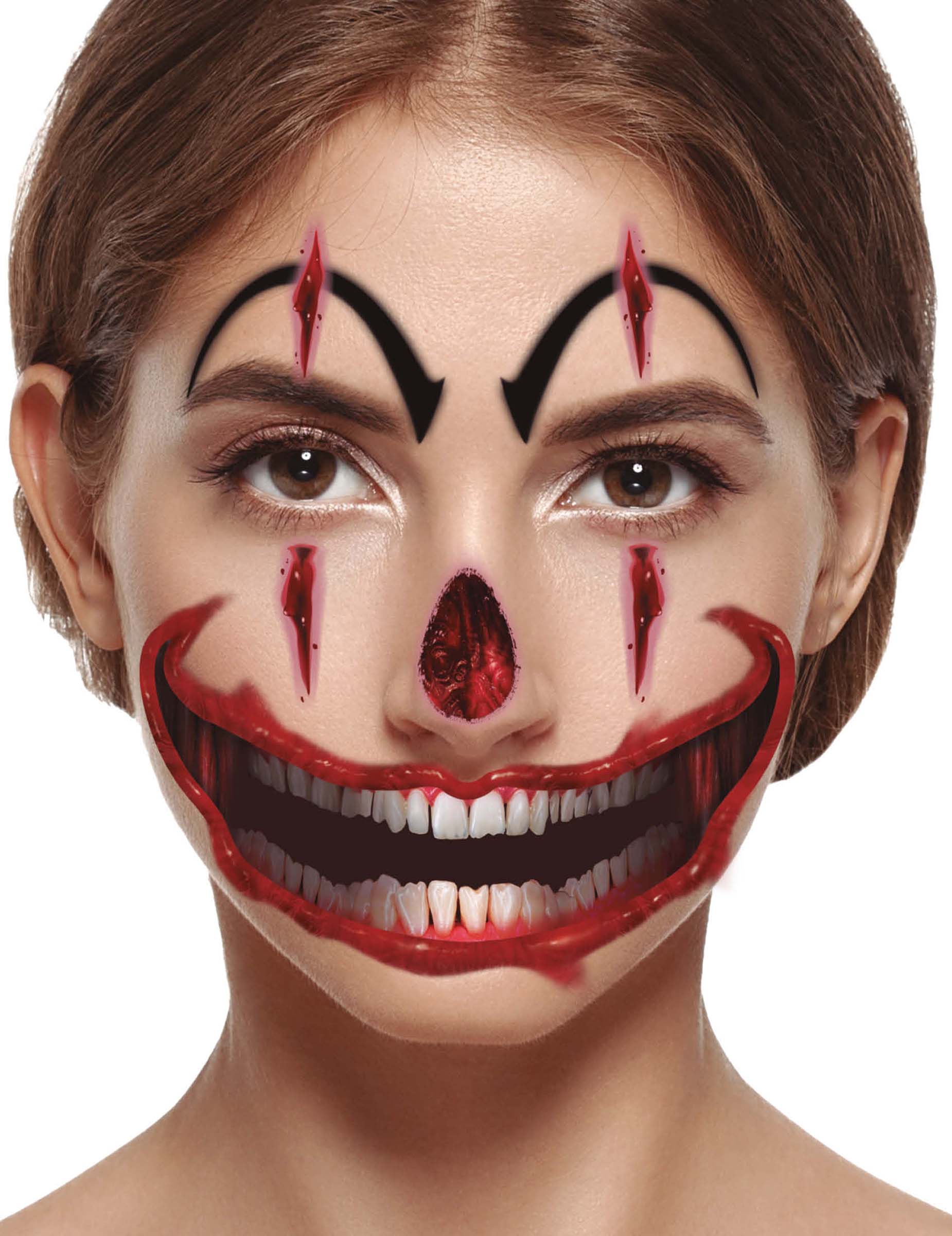 Această placă demonică a tatuajului de pe clovn măsoară 30 x 14 cm și oferă mai multe modele pentru a vă transforma instantaneu aspectul. Tatuajele includ detalii înspăimântătoare precum un zâmbet mare, cu dinți ascuțiți, ochi exagerat de mari și cicatrici terifiante. Fiecare model este conceput precis pentru un efect sinistru. Se aplică ușor, aderă bine pe piele și se retrag la fel de ușor. Aceste tatuaje de clovn rău sunt perfecte pentru Halloween și vă vor completa în mod ideal costumul înfricoșător de clovn.