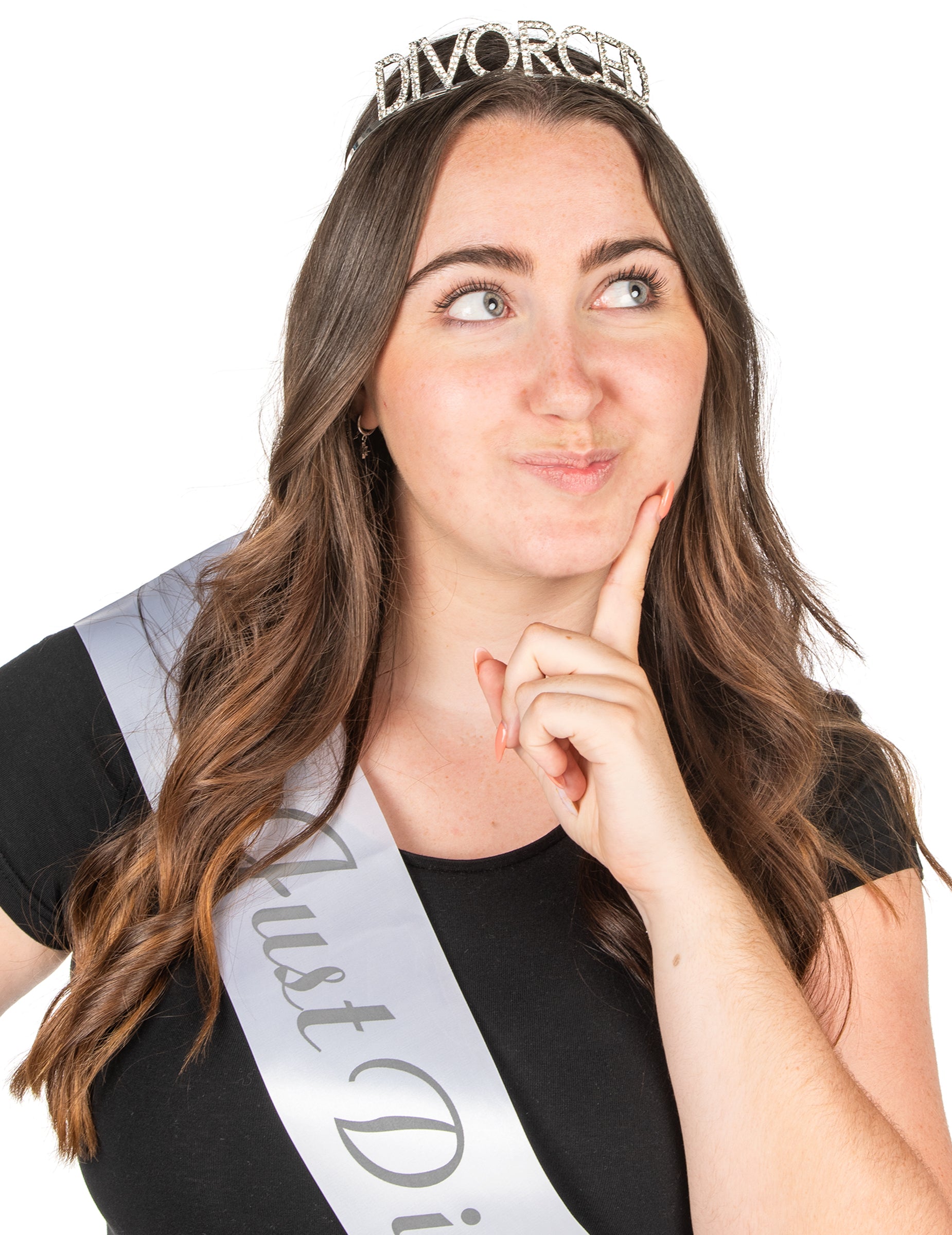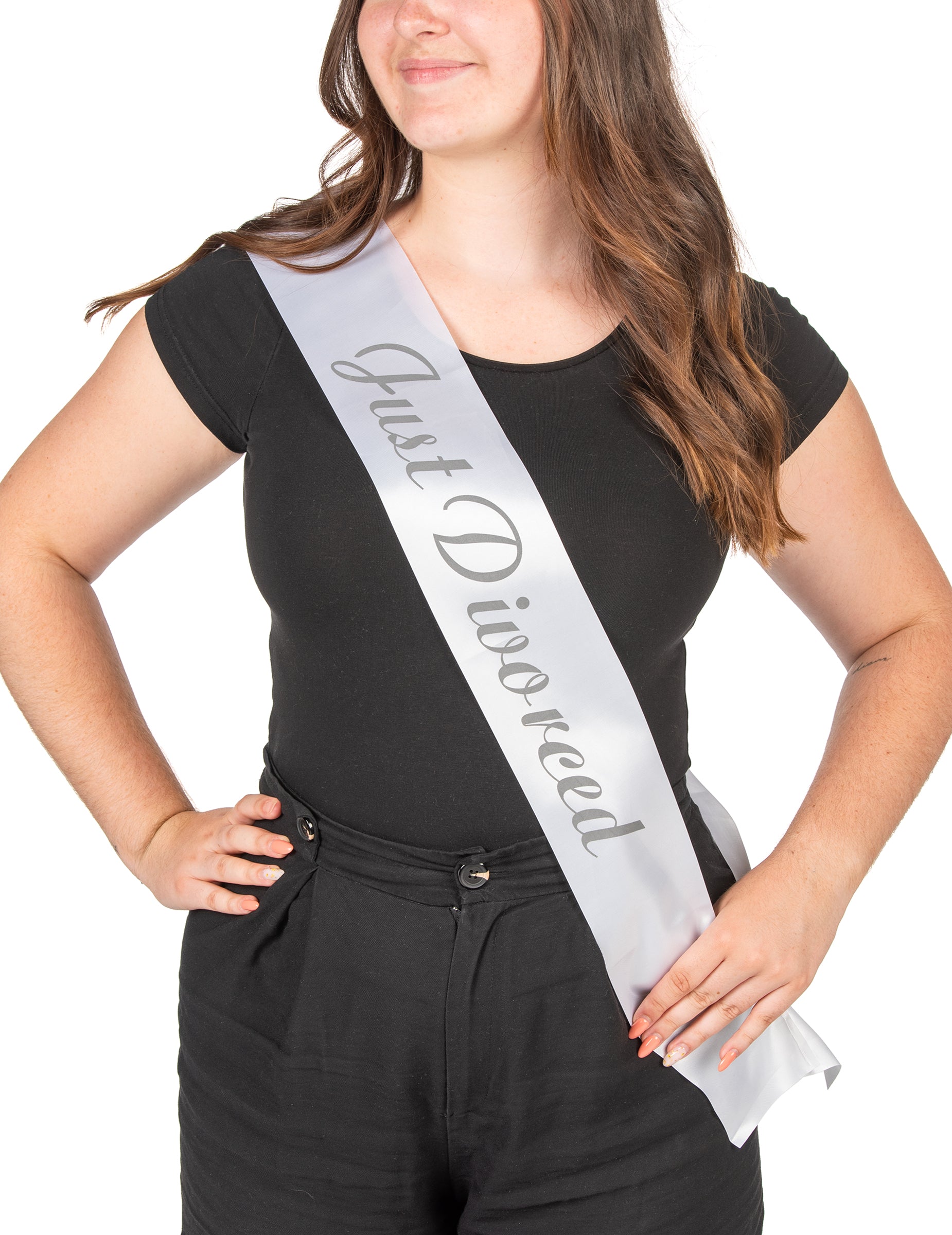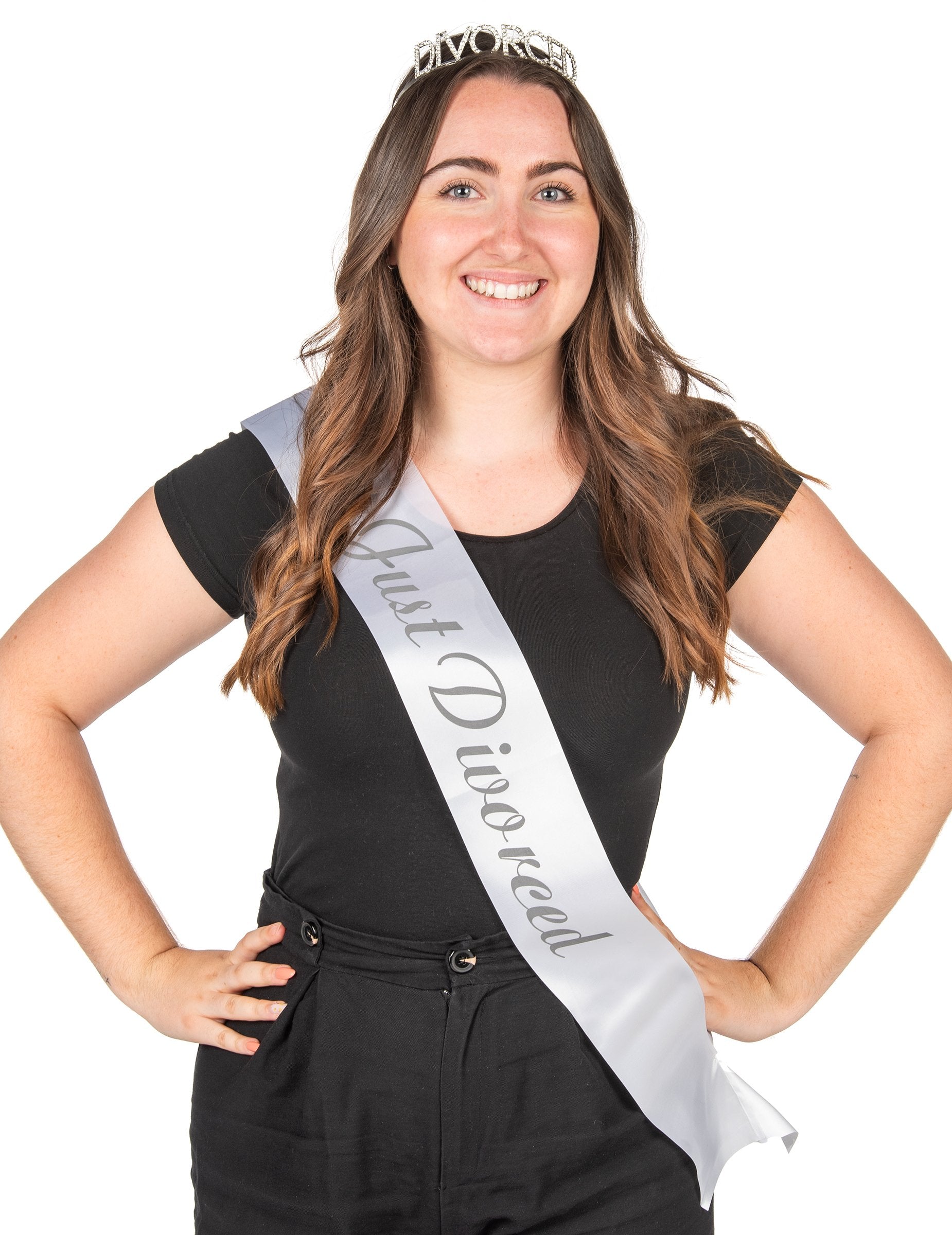 Acest set conține o coroană și o eșarfă. . Coroana metalică, decorată cu strasuri spumante, adaugă o notă de eleganță și distracție ținutei tale. Este conceput pentru a se stabili confortabil datorită pieptenelor sale integrate, permițându -vă să străluciți toată seara fără să vă mișcați. Scrisorile „divorțate” din Richstones surprind lumina și atrag toate ochii, făcându -te vedeta petrecerii. Eșarfa „doar divorțată” completează perfect acest set. Tipărit cu litere elegante pe o țesătură din satin, este atât elegantă, cât și plină de farmec. Ușor de purtat, se adaptează în jurul umărului pentru un aspect ratat. Cu coroana și eșarfa noastră „doar divorțată”, transformați o scenă de viață într -o oportunitate festivă!
