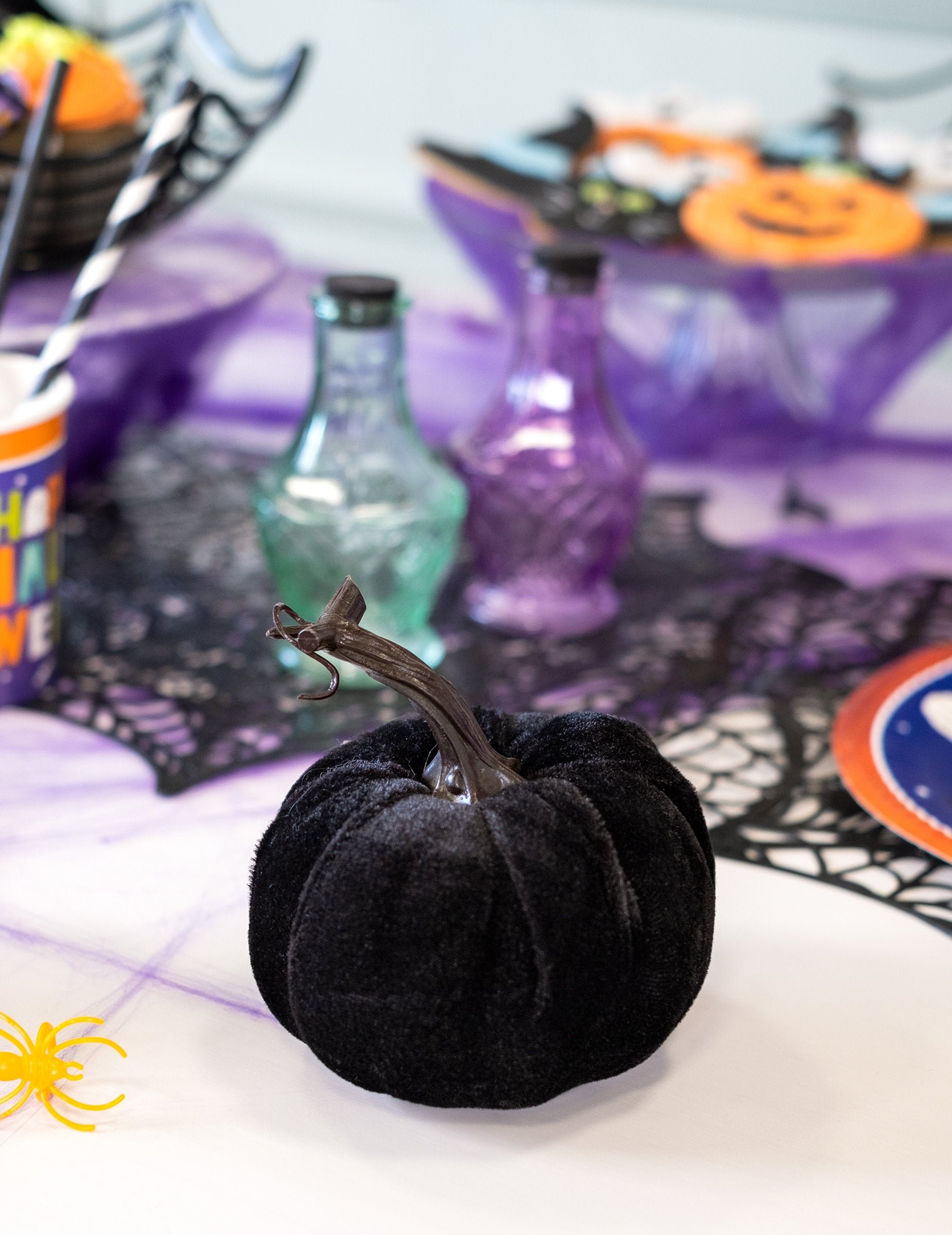 Acest decor reprezintă un dovleac mare. Măsurând aproximativ 10 cm, se caracterizează prin materialul său catifelat care îi conferă un aspect elegant și mătăsos. De asemenea, este decorată cu o tulpină mare pe care o poți îndepărta sau nu după comoditate. Acest dovleac va fi ideal pentru a completa decorarea camerei tale de Halloween!