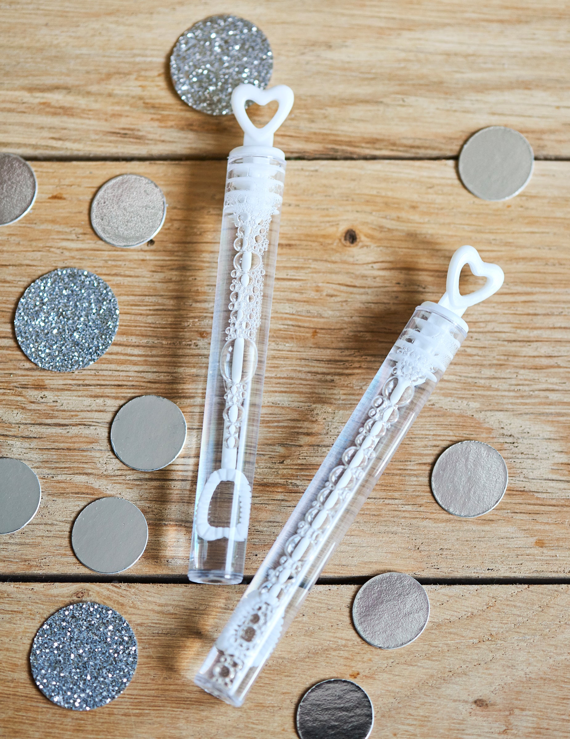 Aceste sticluțe cu bule sunt ideale pentru a crea o atmosferă magică și jucăușă în ziua ta specială. Distribuie-le invitaților tăi pentru un moment de neuitat și fotografii frumoase.