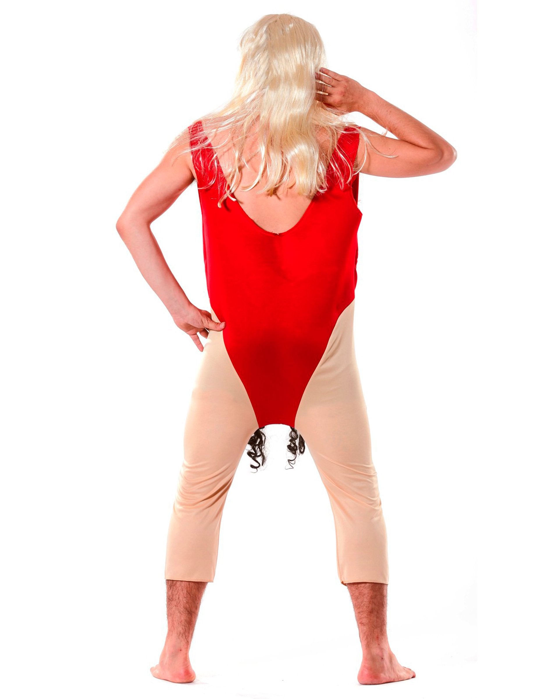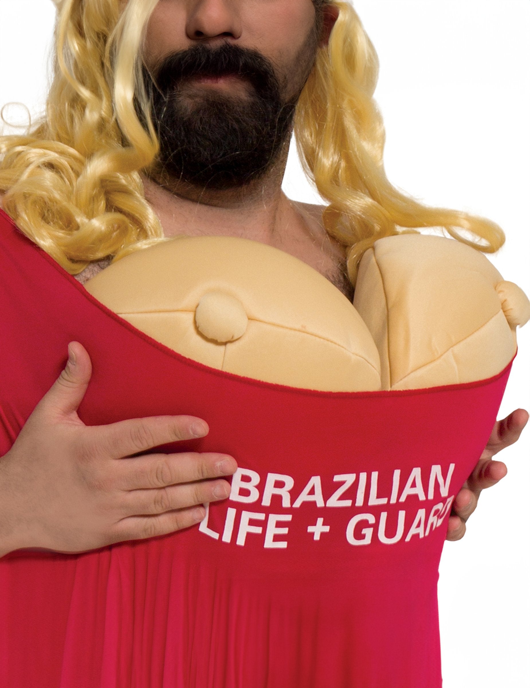 Acest costum plin de umor pentru barbati in marimi mari este inspirat din celebrul costum de baie rosu, dar intr-o varianta inedita. Este format dintr-un costum complet. Salopeta de culoare carne este decorată cu un costum de baie roșu cu „Brazilian Life Guard” imprimat pe piept. Detalii comice, precum un piept exagerat de mare și un smoc de păr care iese din cămașă, completează acest costum hilar. Faceți un cap la următoarea petrecere de costume, petrecere tematică Baywatch sau alt eveniment distractiv ca salvamar cu un aspect amuzant și neașteptat!