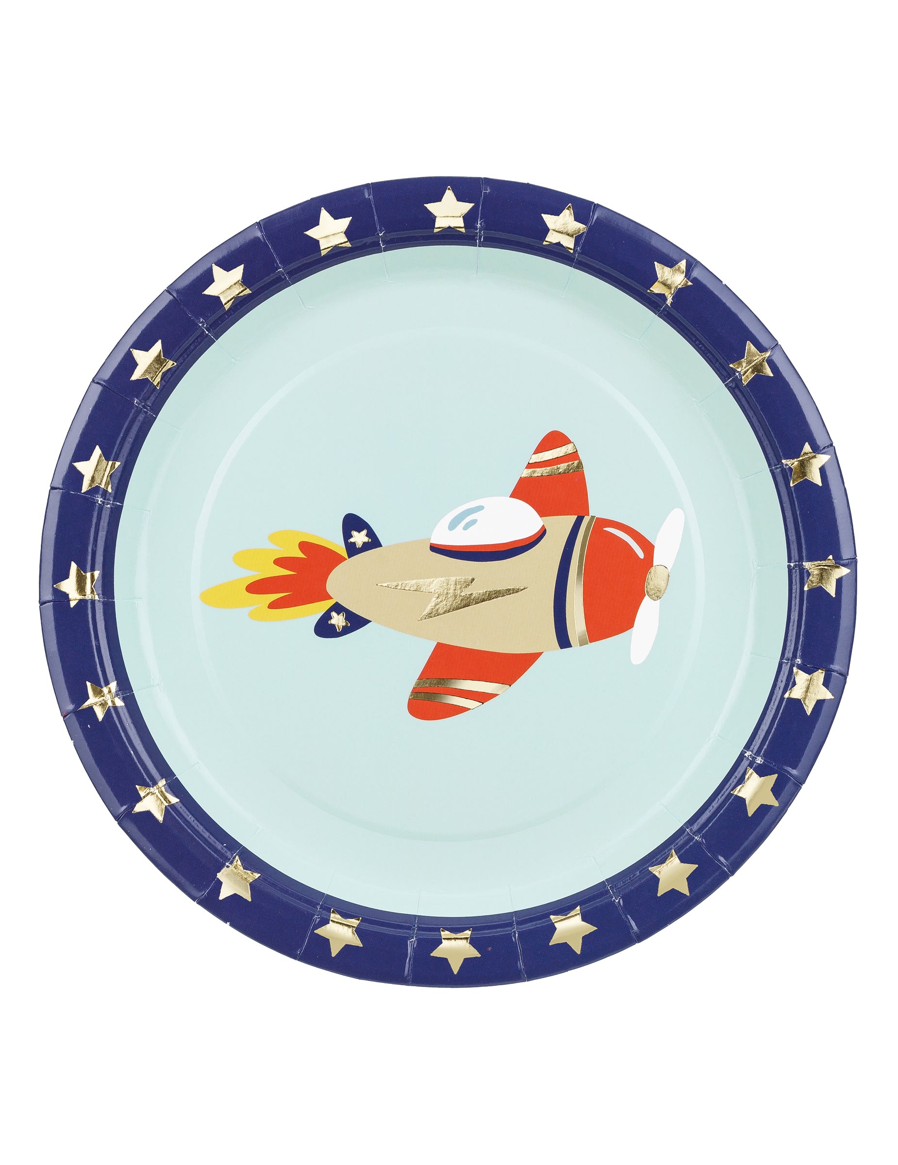 Adăugați o notă aerisită mesei dvs. cu acest set de 6 farfurii de carton cu un diametru de 18 cm. Decorate cu o fermecătoare mașină zburătoare în centru, acestea afișează un gradient foarte elegant de albastru deschis și închis. farfurii Materialele rezistente se vor potrivi de minune cu decorul tău.ziua de naștere dedicat lumii avion mic.