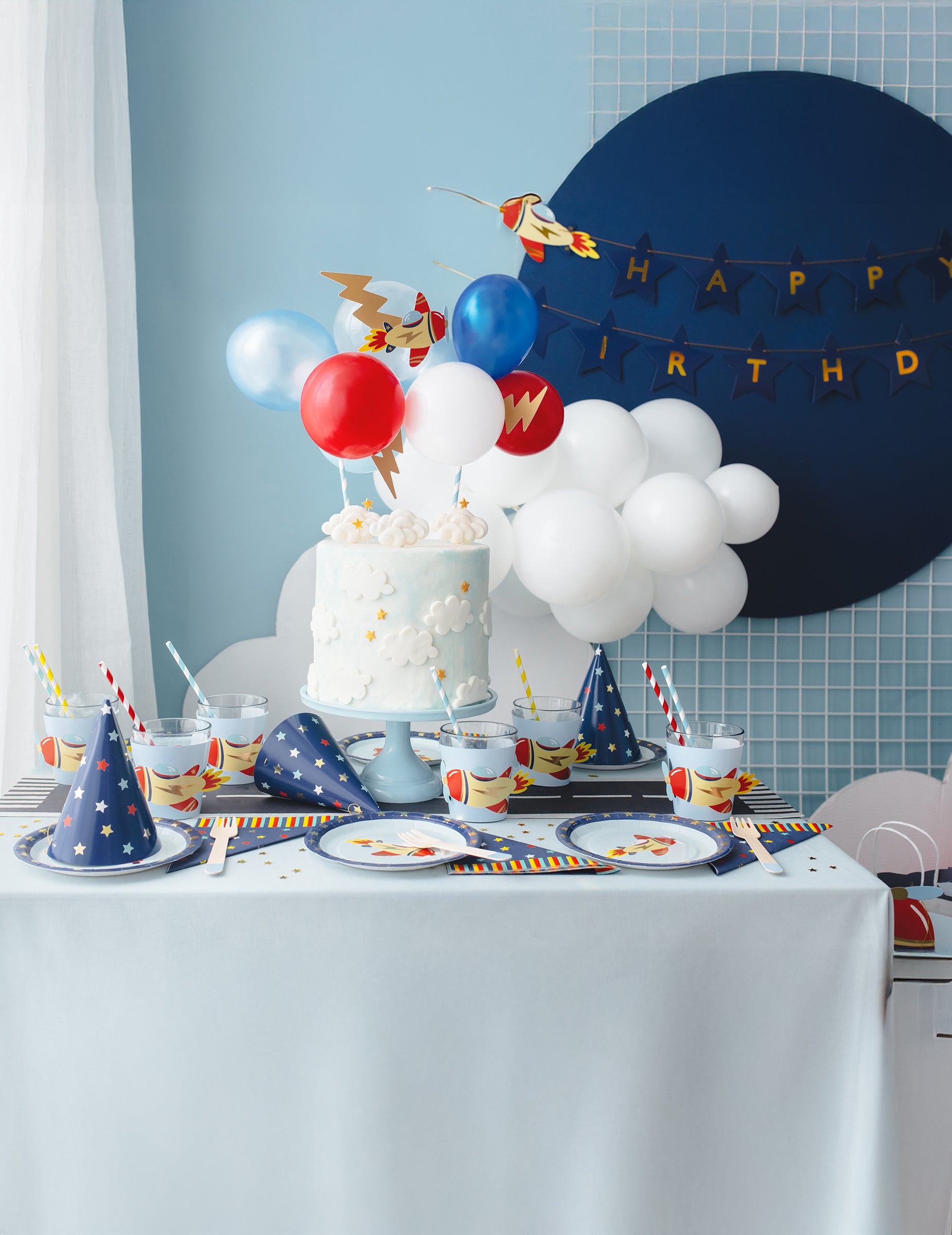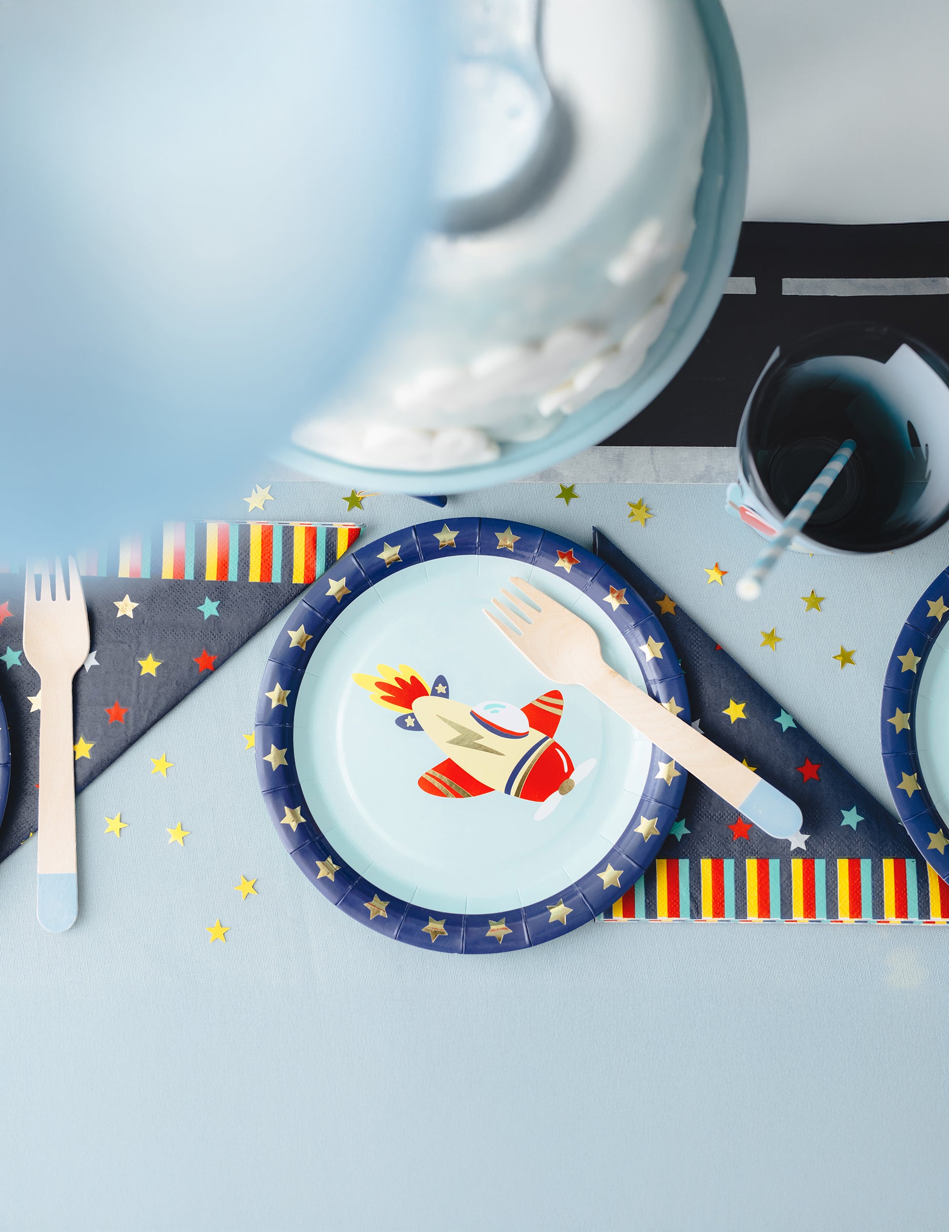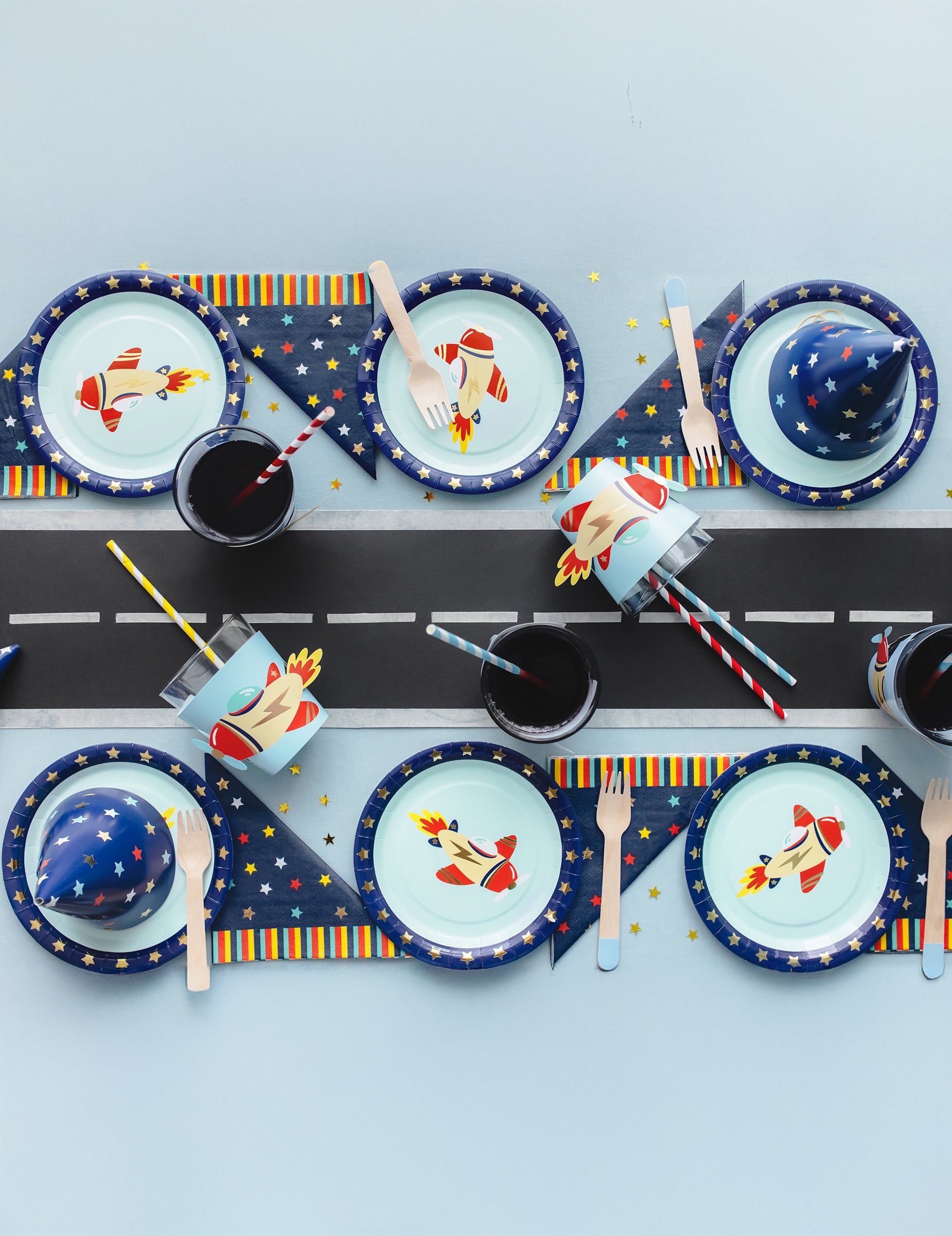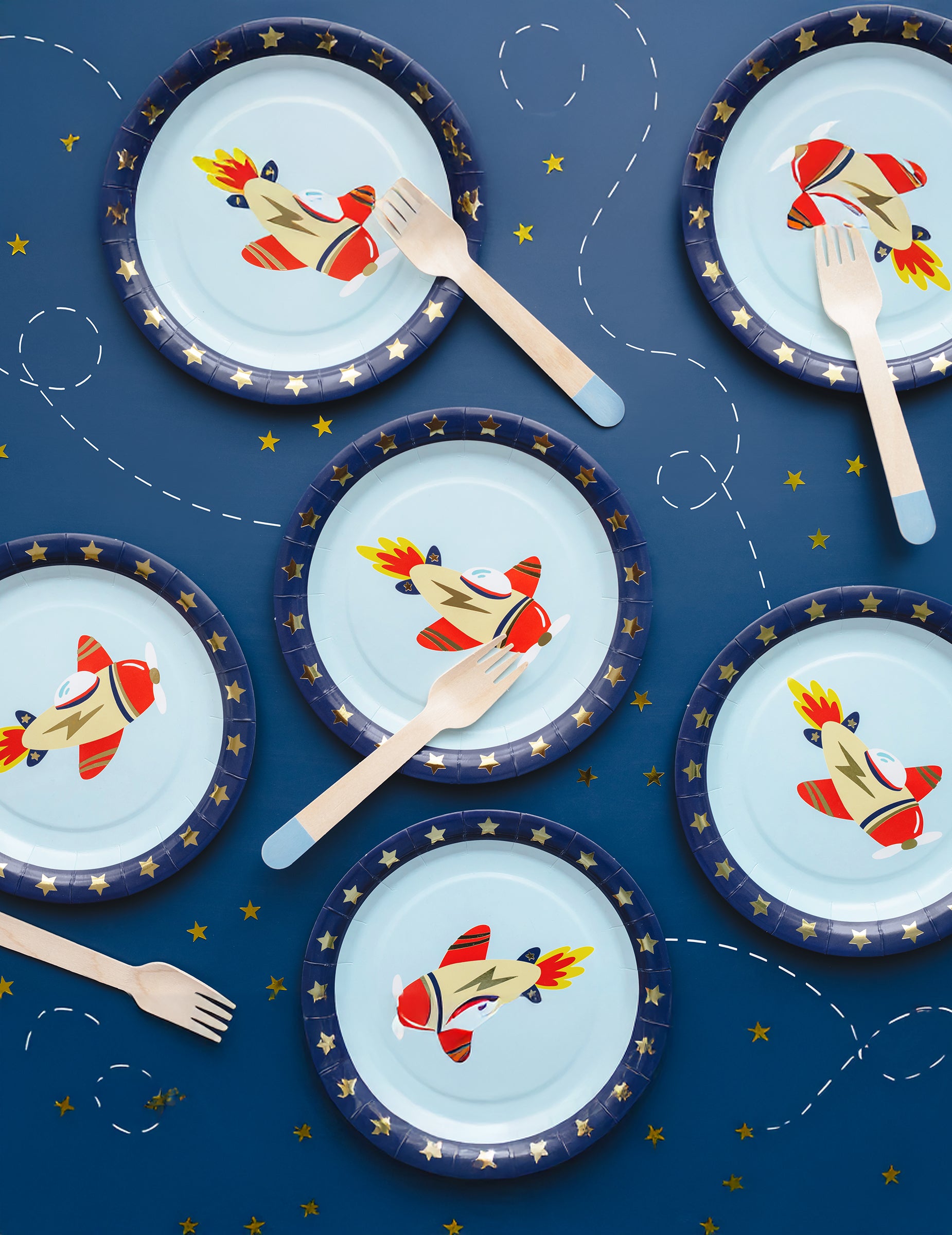 6 plăcuțe mici pentru avion 18 cm carton albastru