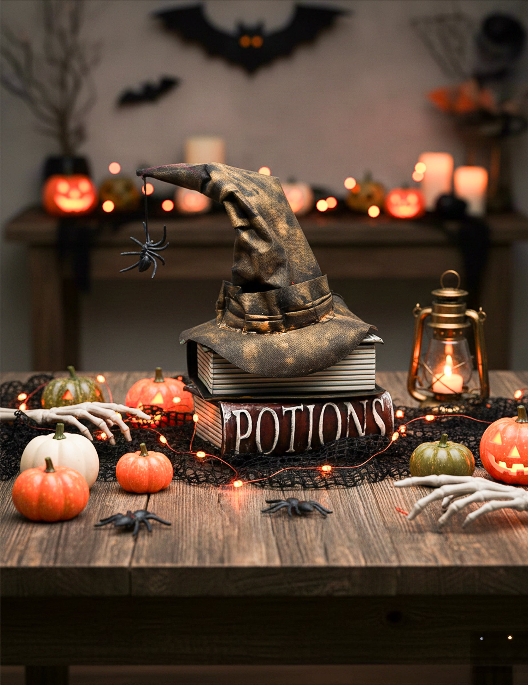 Creați o ambianță vrăjitoare cu această decorare animată de carte cu vrăjitoare. Cu o dimensiune de 35 x 17 x 15 cm, Această piesă fascinantă este perfectă pentru a -ți surprinde oaspeții cu efectele sale de sunet și lumină care aduc totul la viață. Misterious Grimoiire, completate cu pălăria vrăjitoarei în vârstă care face mișcări însoțite de efecte sonore ale vrăjitoarelor care urlă și un păianjen atârnat, adaugă o atingere mistică la masa sau bufetul tău. Un efect de iluminare verde oferă întregului lucru o strălucire captivantă, amplificând atmosfera magică și deranjantă. Acest produs funcționează cu 3 baterii LR03-AAA. Detaliile realiste și animațiile imersive fac din acest accesoriu un element cheie al decorației tale de Halloween. Ideal pentru o petrecere terifiantă sau o seară tematică, acest decor vă va amenaja evenimentul cu stil și magie!