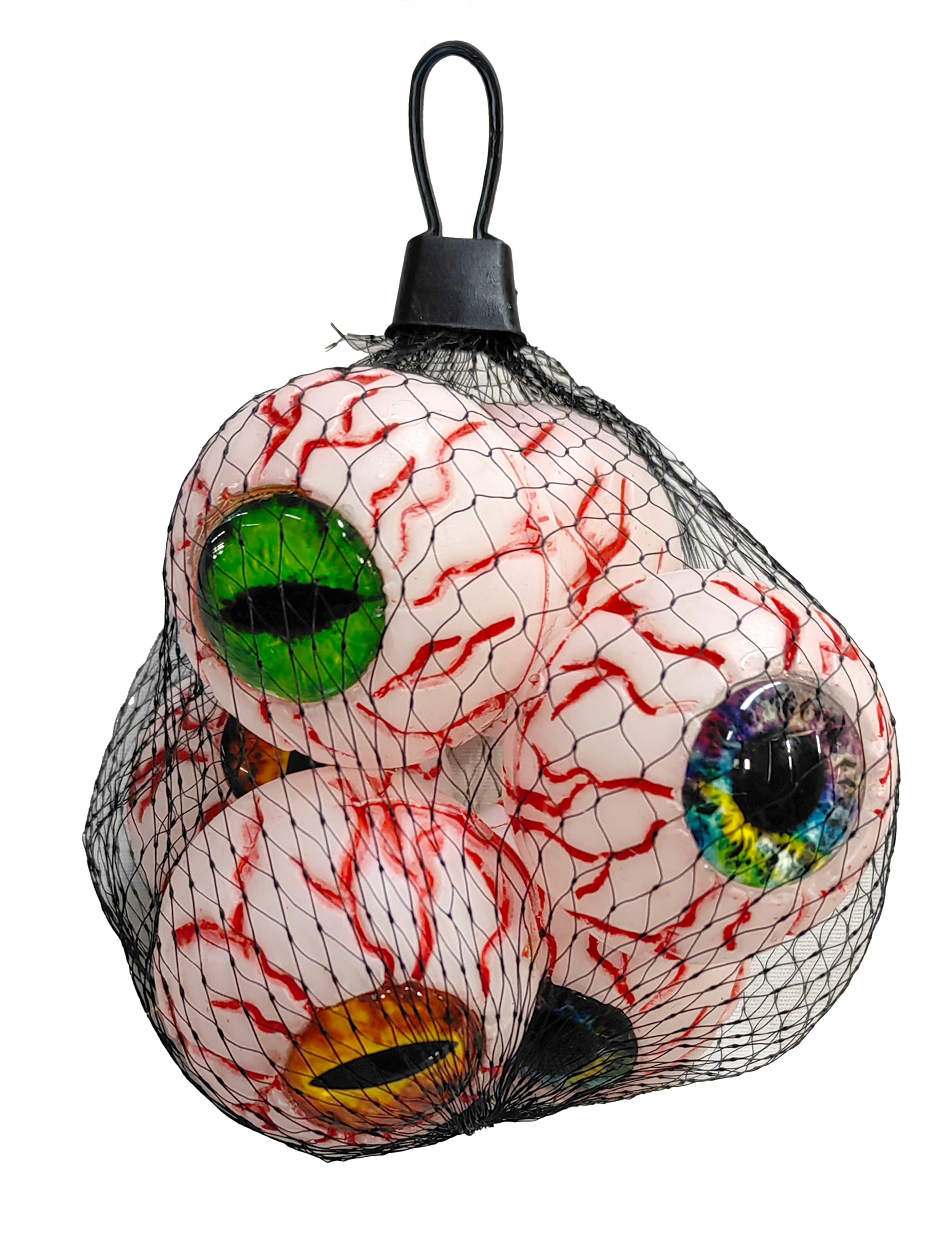 Ces yeux maléfiques sont en plastique et mesurent environ 16 cm de circonférence chacun. De couleurs différentes, vous pourrez imaginer qu'il s'agit d'yeux de dragons, de chat ou encore de monstre. Dispersés sur une table ou simplement posés dans un bocal, ces yeux apporteront une touche horrifique à votre décoration d'Halloween.