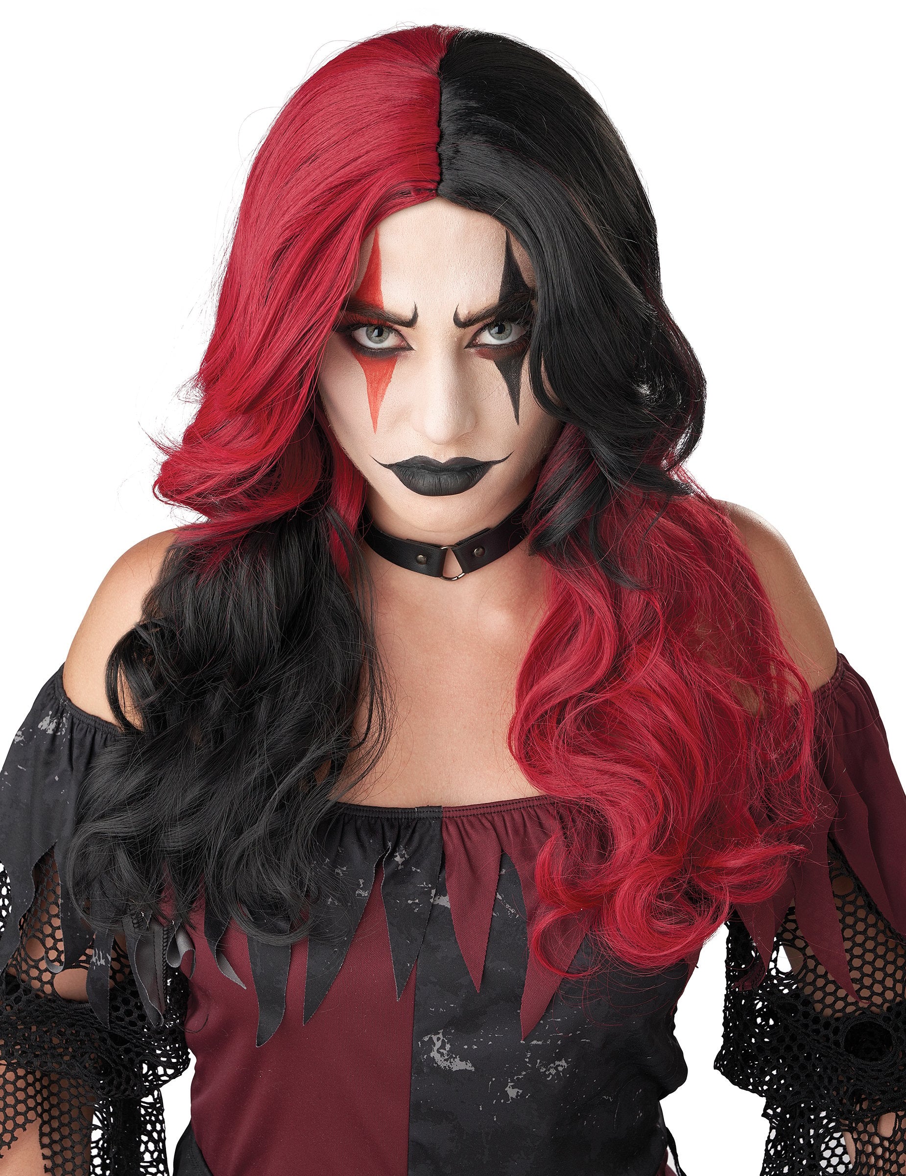 Perruque joker noire et rouge luxe femme
