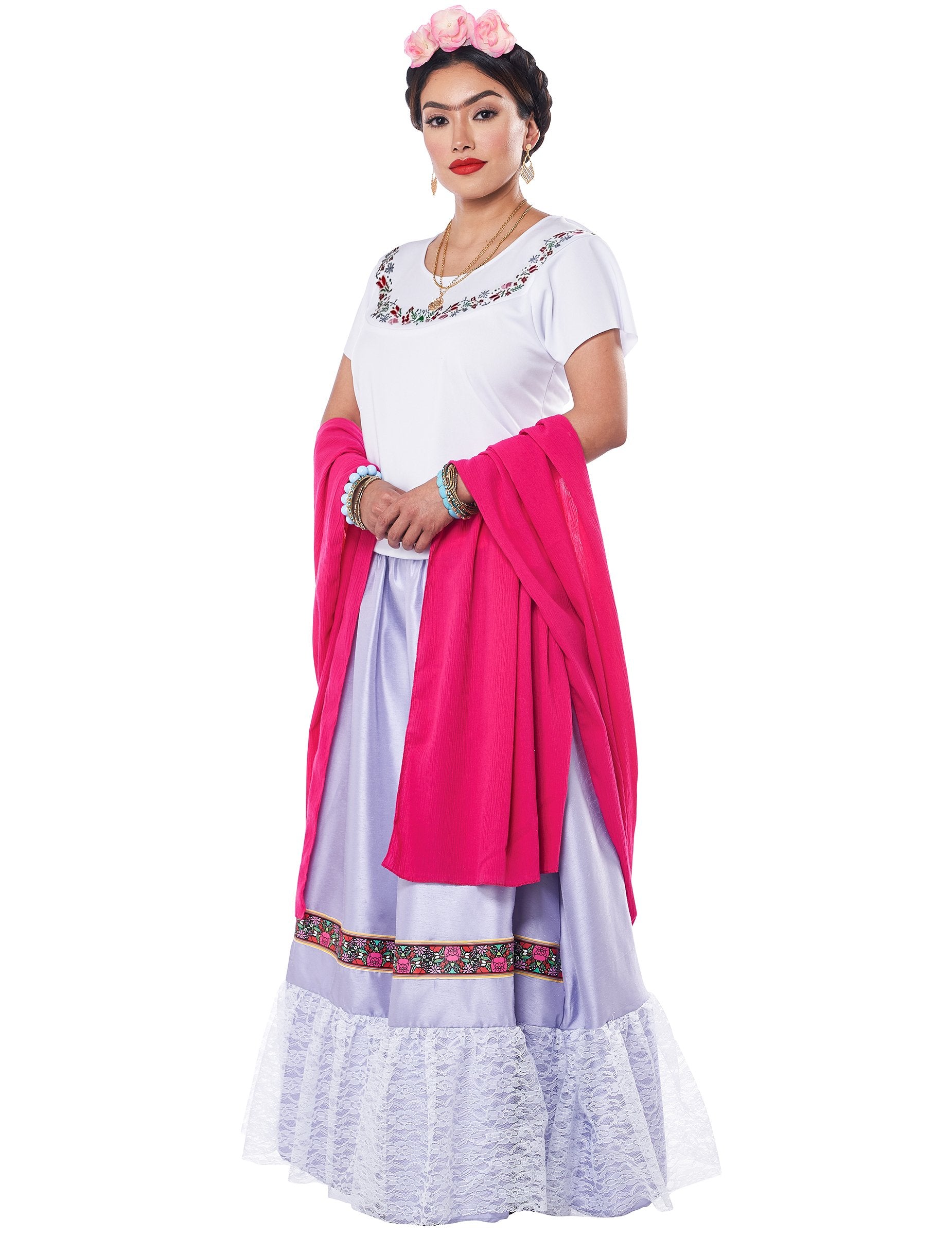 Ce déguisement élégant et coloré vous plonge dans l’univers bohème et artistique d’une célèbre peintre mexicaine. Il comprend une longue jupe fluide ornée de motifs traditionnels, un haut blanc brodé aux détails délicats et un châle rose vif, apportant une touche de charme authentique. Avec son style folklorique et raffiné, ce costume est idéal pour une soirée à thème, un carnaval ou un événement artistique. Complétez votre tenue avec une coiffure tressée ornée de fleurs et quelques accessoires colorés pour un look iconique et inoubliable ! Exprimez votre créativité et votre amour pour l’art avec ce magnifique déguisement d’artiste mexicaine !
