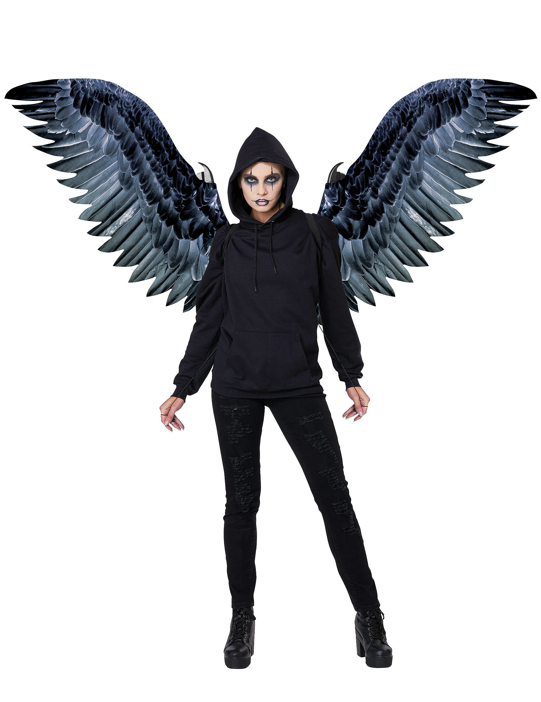Ces ailes géantes de corbeau pour adulte affichent une envergure impressionnante, environ 170 cm, parfaites pour une transformation mystique ou ténébreuse. Avec leur effet plumes réaliste, elles apportent une touche élégante et inquiétante à votre tenue. Leur structure légère permet un port agréable, elles sont maintenues par des sangles pour un ajustement standard. Grâce à des anneaux fixés aux doigts, vous pouvez étendre les ailes simplement en les écartant doucement vers les côtés, créant ainsi un mouvement ample et théâtral. Idéales pour une soirée Halloween, un cosplay ou incarner une créature ailée fascinante !
