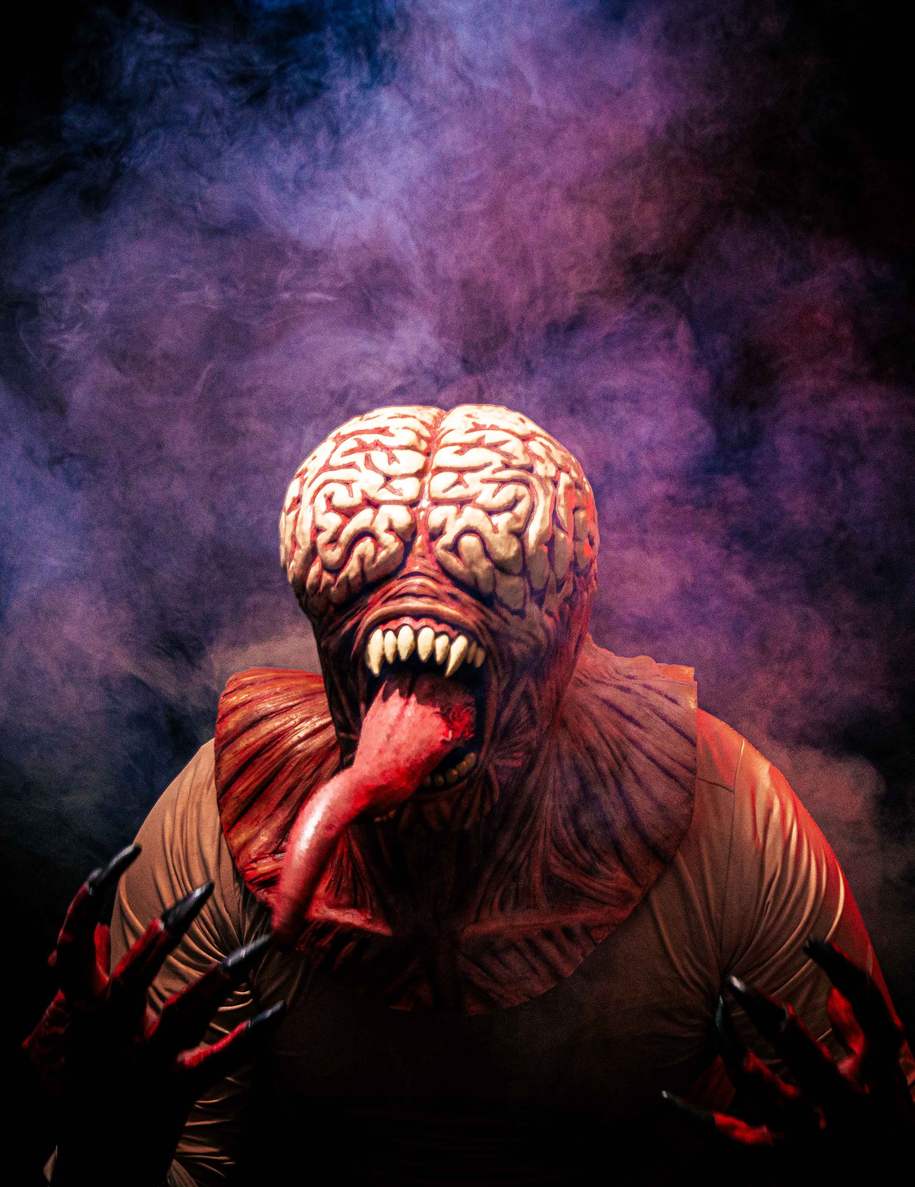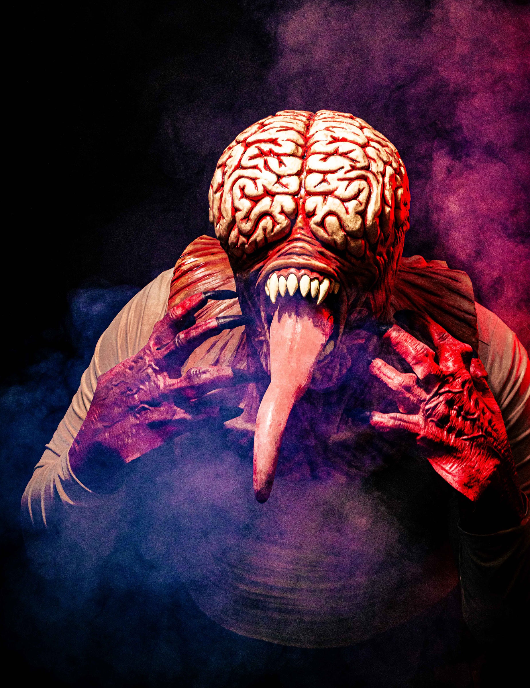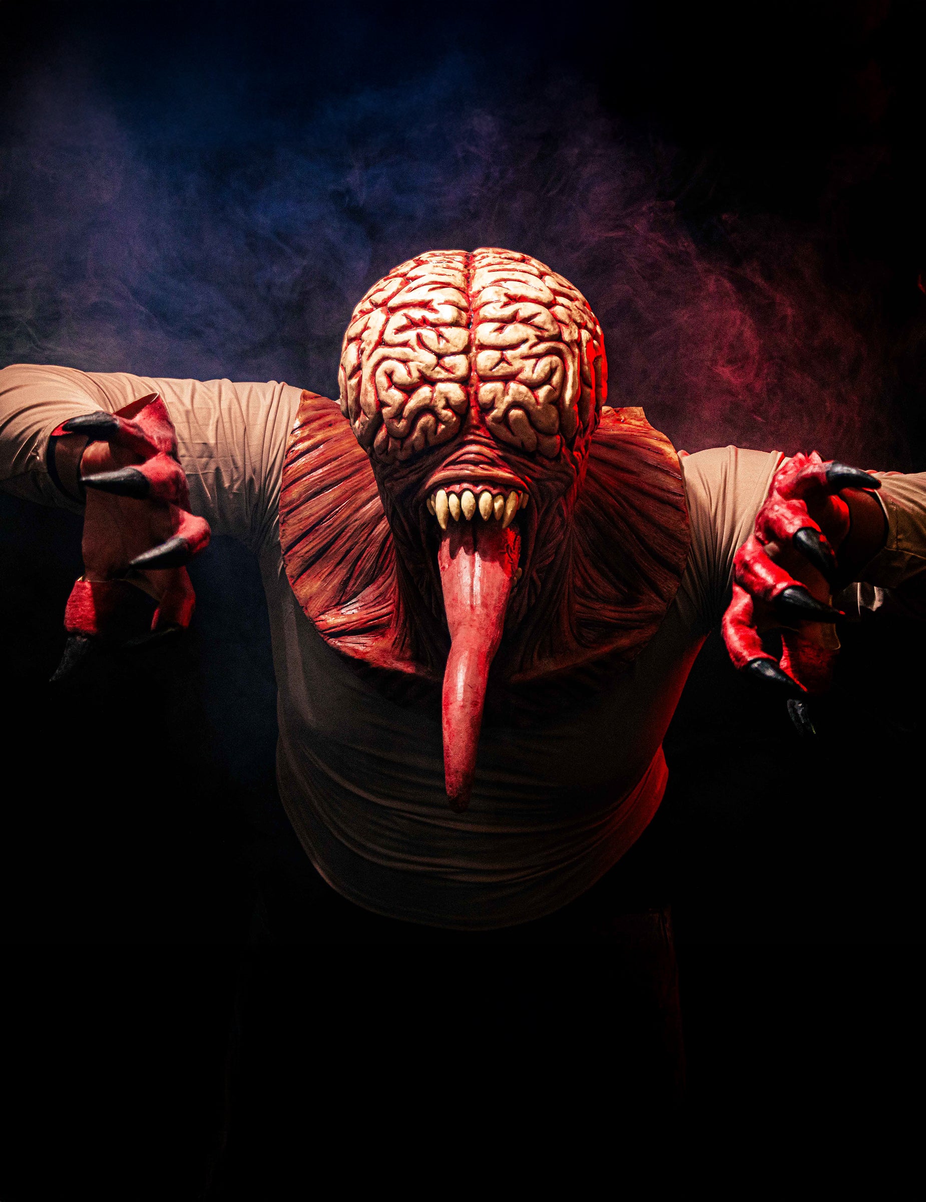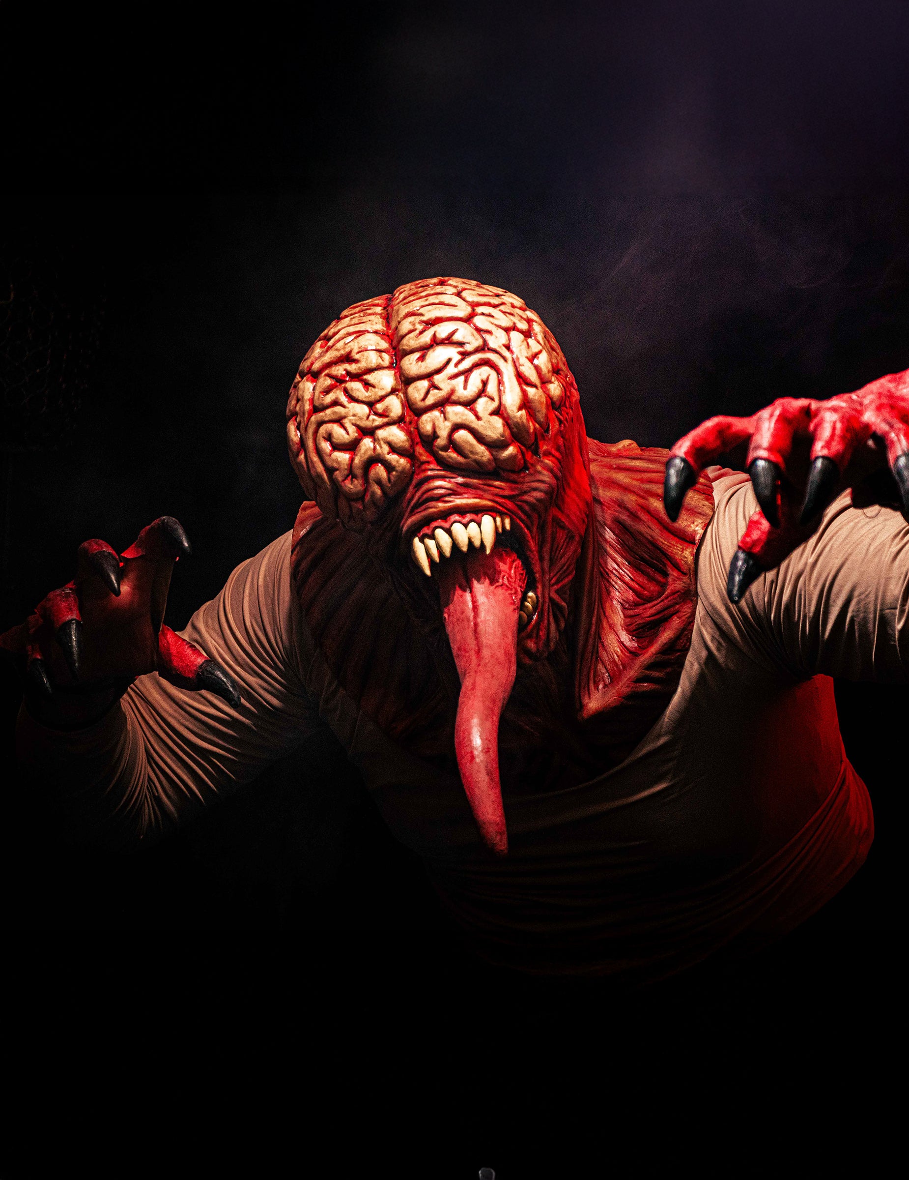 Această mască cu față completă te transformă într-un monstru terifiant cu un creier aparent. Cu pielea sa strânsă, veche, gura sa, cu dinții ascuțiți și limba sa lungă vâscoasă, pare direct dintr -un experiment eșuat sau o lume infernală. Craniul său deschis care dezvăluie un creier detaliat, cu vene umflate și nuanțe roșii, își consolidează aspectul înspăimântător. Textura realistă și finisarea atentă dau impresia cărnii crude, ceea ce face ca această mască ultra-realistă să fie și mai înfiorătoare. Acoperirea completă a capului și a torsului superior, această mască de groază este ideală pentru Halloween, o petrecere înfricoșătoare sau un eveniment tematic. Cu el, jucați ca o urâciune care iese din adâncul groazei!