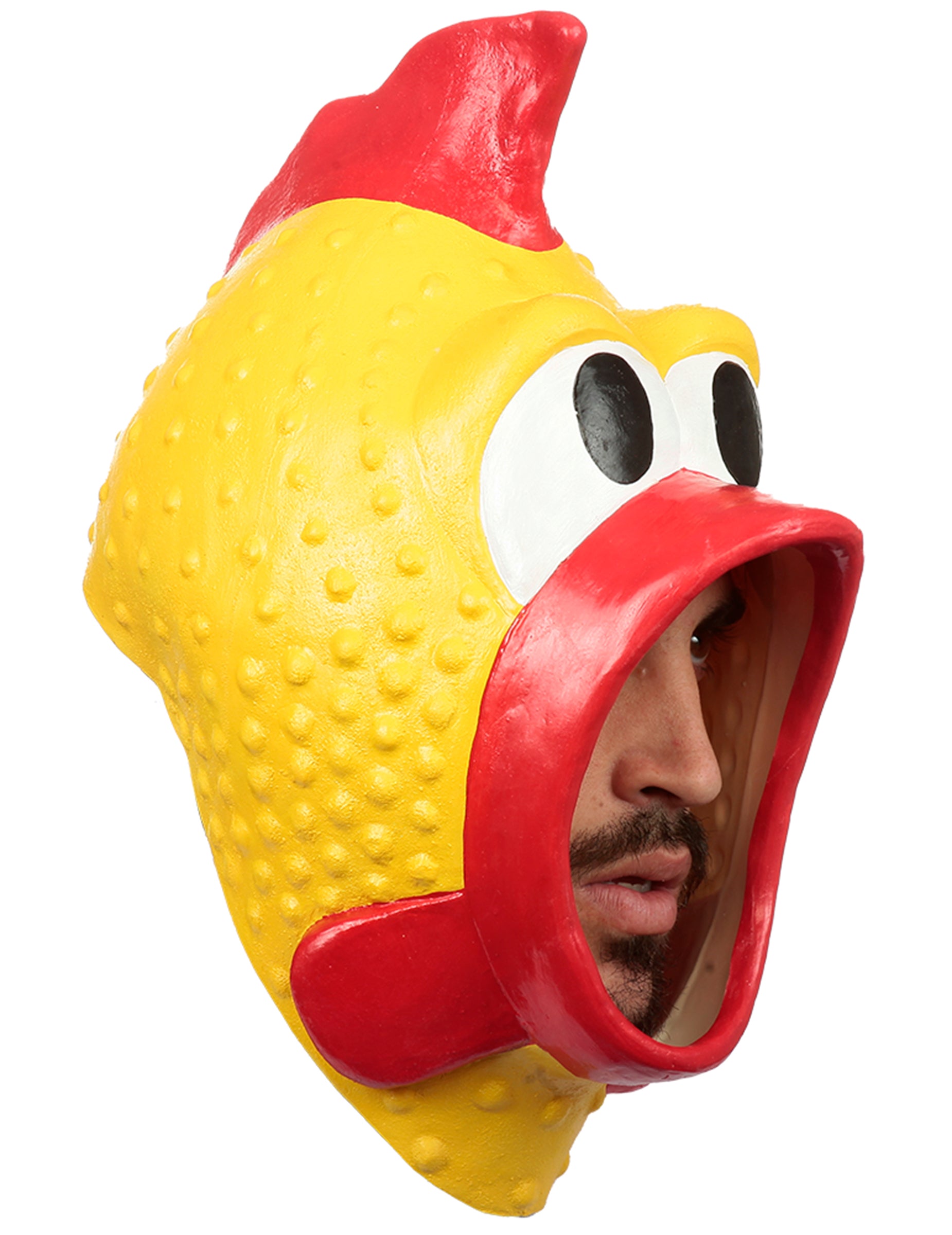 Ce masque intégral en plastique vous transforme en un poulet géant, parfait pour apporter une touche d’humour à vos événements déguisés. Avec son jaune vif, ses grands yeux ronds et son bec ouvert, il rappelle le célèbre poulet en caoutchouc et garantit un effet comique immédiat. Son design imite la peau granuleuse d’un poulet, tandis que sa crête et son bec rouges bien marqués accentuent son apparence loufoque. L’ouverture au niveau du bec permet de garder une bonne visibilité et de respirer confortablement. Idéal pour Carnaval, un événement humoristique ou tout simplement pour faire sensation, ce masque poulet est l’accessoire parfait pour ne pas passer inaperçu !