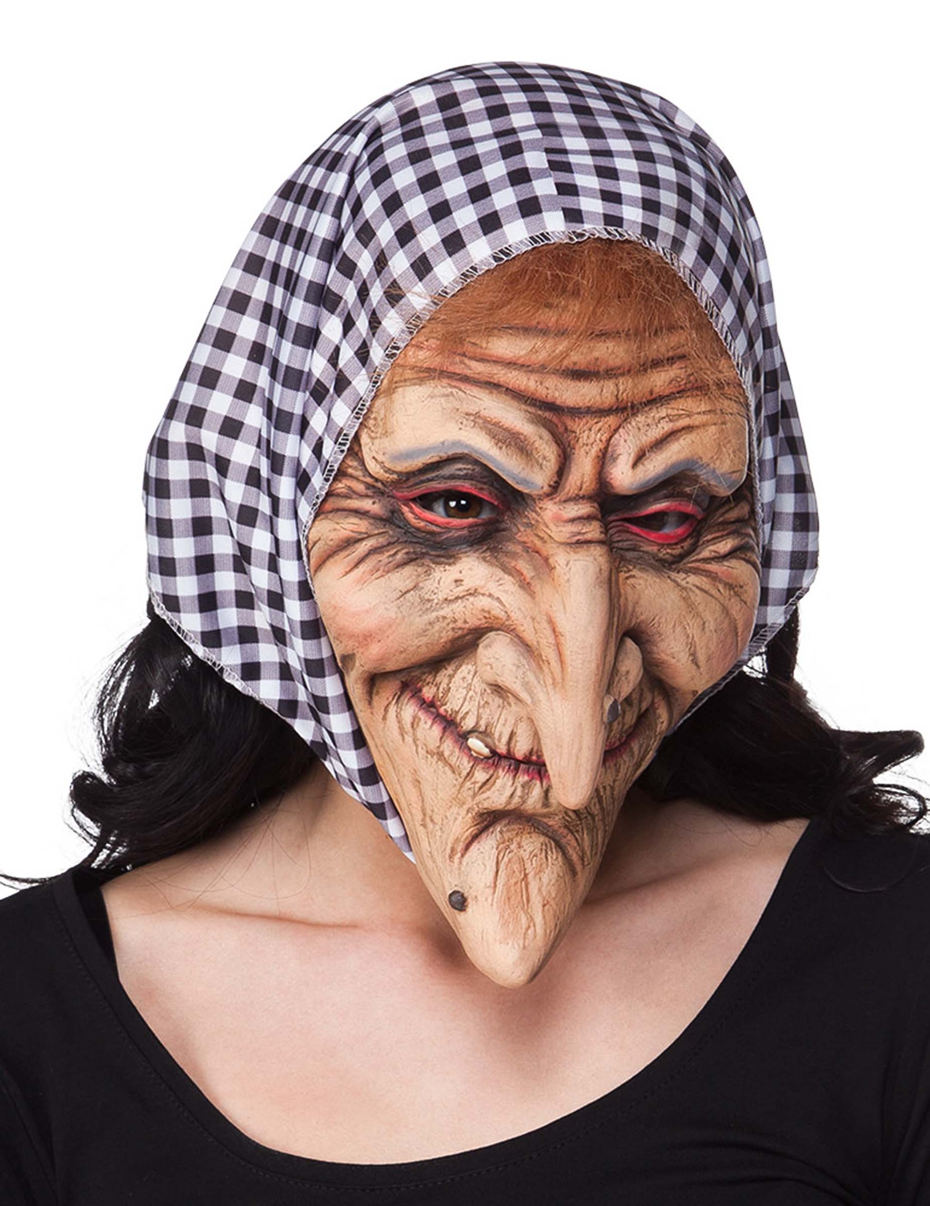 Această mască de vrăjitoare veche pentru adulți este accesoriul perfect pentru a completa un costum de Halloween sau o petrecere tematică. Fabricată din latex moale, înfățișează o față ridată și expresivă, cu un nas lung și coroiat și un zâmbet sinistru. Masca este decorată cu o eșarfă în carouri alb-negru, cusută direct pe cap, adăugând o notă rustică. Ușor de pus, acoperă complet fața pentru un aspect captivant, permițând în același timp o bună libertate de mișcare. Perfectă pentru a întruchipa o vrăjitoare în stil tradițional și a face o impresie de durată.