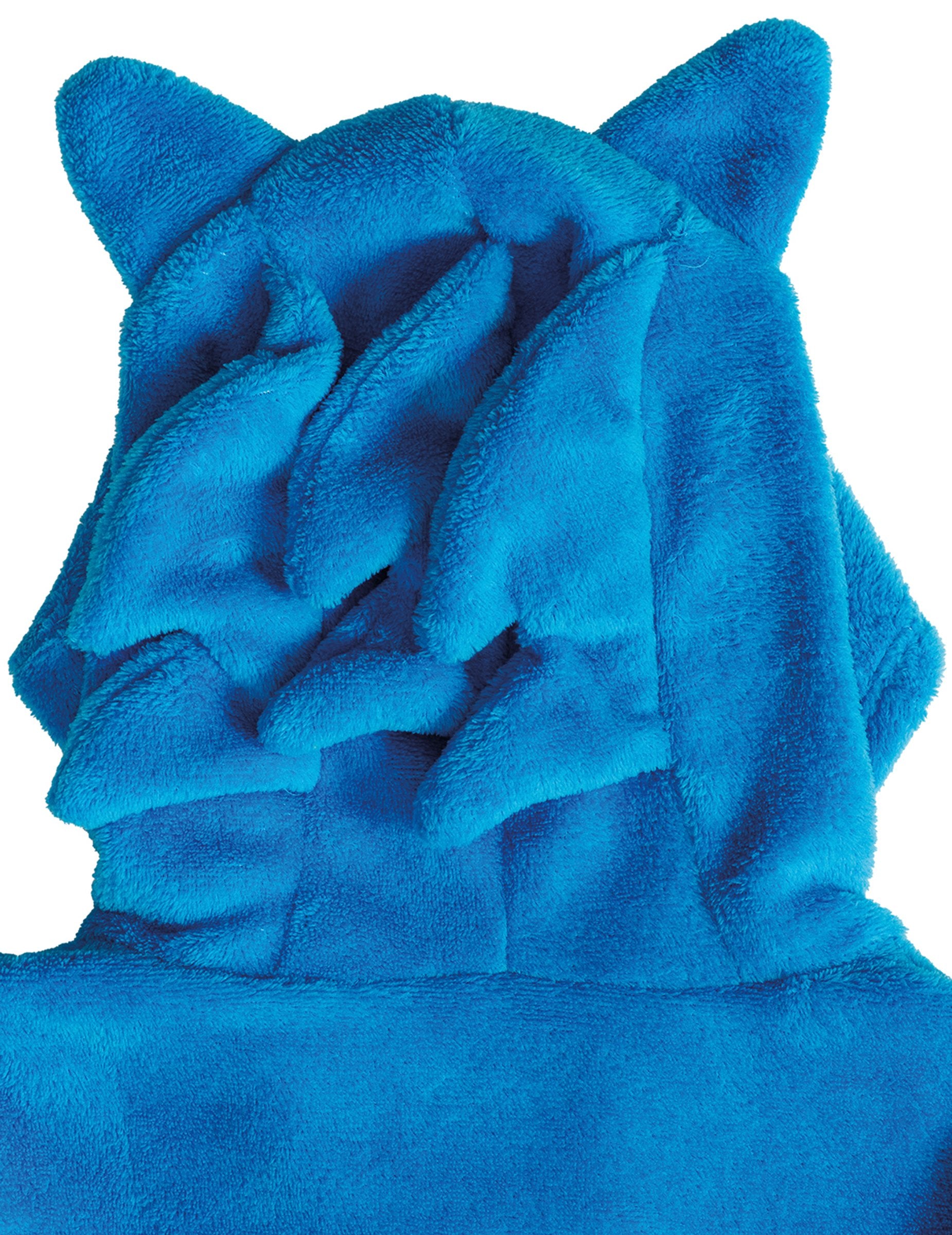 Acest costum de Sonic pentru copii ia forma unei salopete albastre cu glugă atașată, inspirată de cel mai faimos arici supersonic din jocurile video. Gluga este decorată cu pene emblematice ale lui Sonic, cu ochi imprimați și urechi ridicate pentru un aspect fidel personajului. Detalii precum burtica bej și mănușile albe atașate evocă perfect aspectul său. Ideal pentru o zi de naștere, un carnaval sau o petrecere în costume, acest costum oficial licențiat îi permite copilului dumneavoastră să intre în lumea dinamică și retro a lui Sonic într-o clipă.
