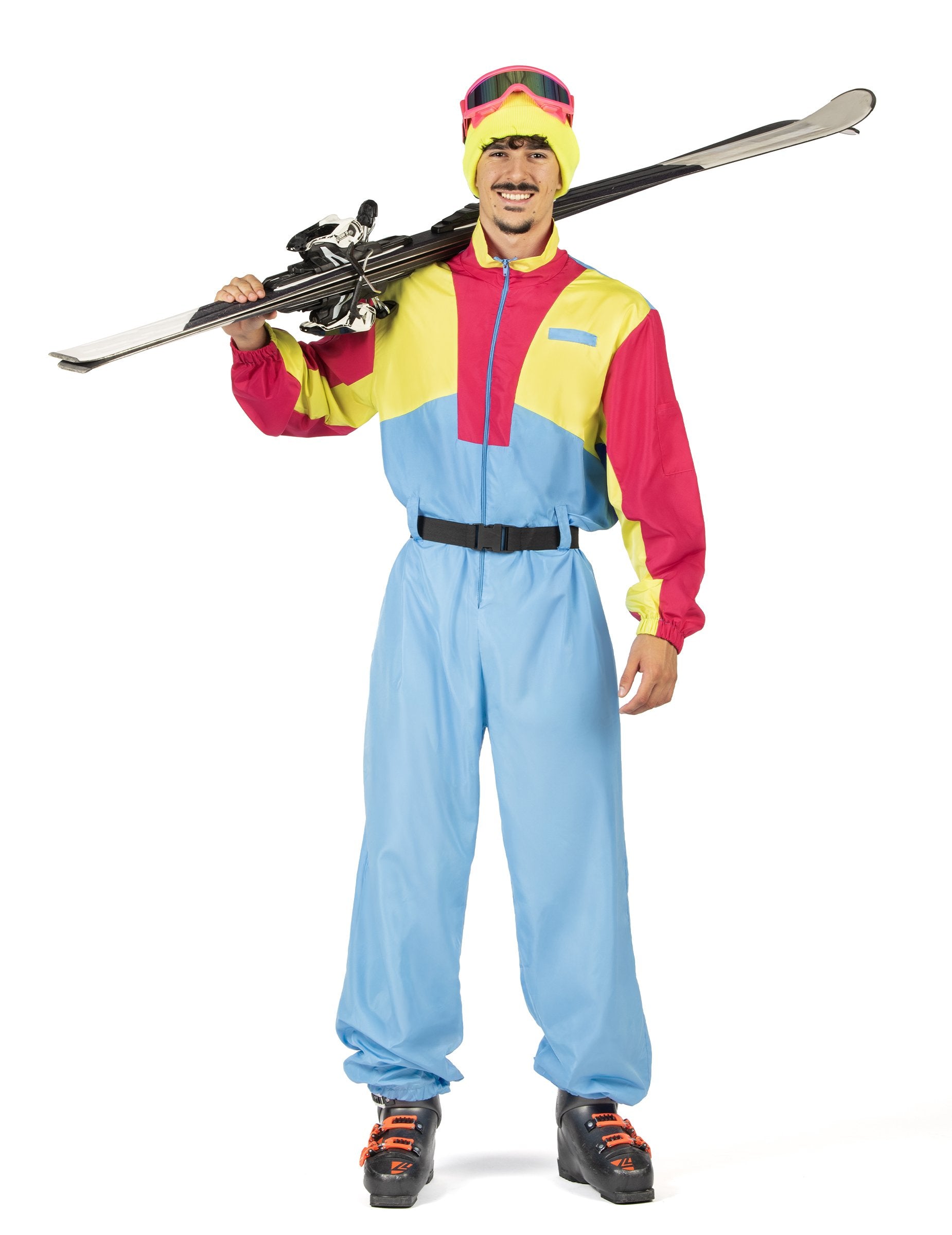 Cette combinaison de ski vintage homme vous transporte dans l’univers des vacances au ski façon rétro. Avec ses blocs de couleurs bleu pastel, jaune solaire et rouge cerise, elle évoque les années folles de la glisse. La forme décontractée permet de bouger sans contrainte, et la fermeture éclair frontale simplifie l’habillage. Une poche sur la poitrine vient rehausser l’ensemble, et la ceinture noire, à nouer autour de la taille, complète parfaitement l’allure. Idéale pour une soirée déguisée, un événement sur le thème des sports d’hiver ou simplement pour un look original, cette tenue saura faire parler d’elle.