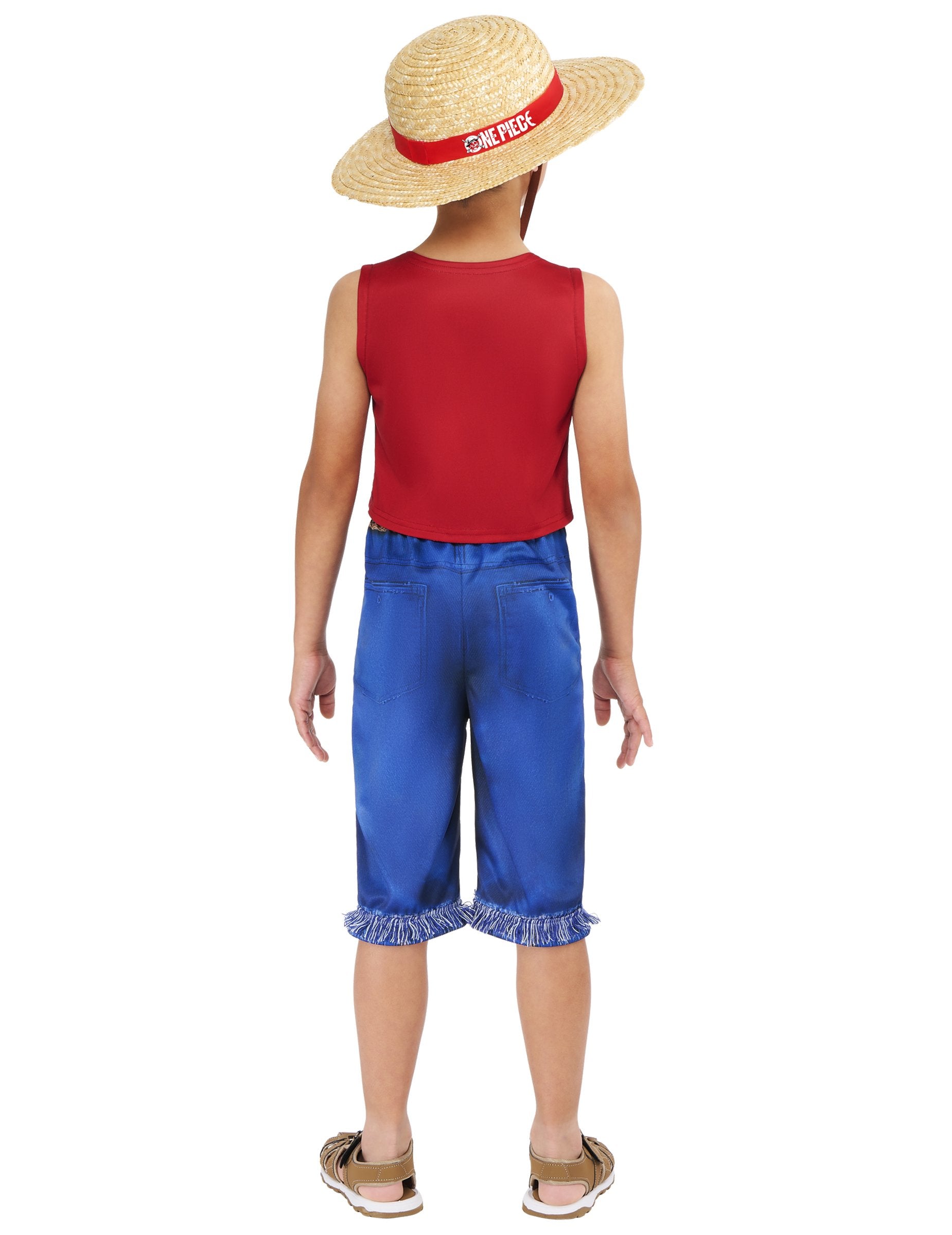 Acest costum clasic Luffy One Piece pentru copii este format dintr-un top roșu fără mâneci, împodobit cu logo-ul oficial One Piece, care amintește de celebra jachetă a eroului. Pantalonii albaștri cu aspect de denim, decorați cu franjuri în partea de jos a picioarelor, completează perfect ținuta, o aluzie fidelă la aspectul său iconic. Pălăria esențială de paie, purtând și logo-ul One Piece, completează ansamblul și le permite copiilor să-l întruchipeze pe deplin pe viitorul Rege al Piraților. O ținută ideală pentru a face senzație la Carnaval și a deveni personajul lor preferat pentru o zi.