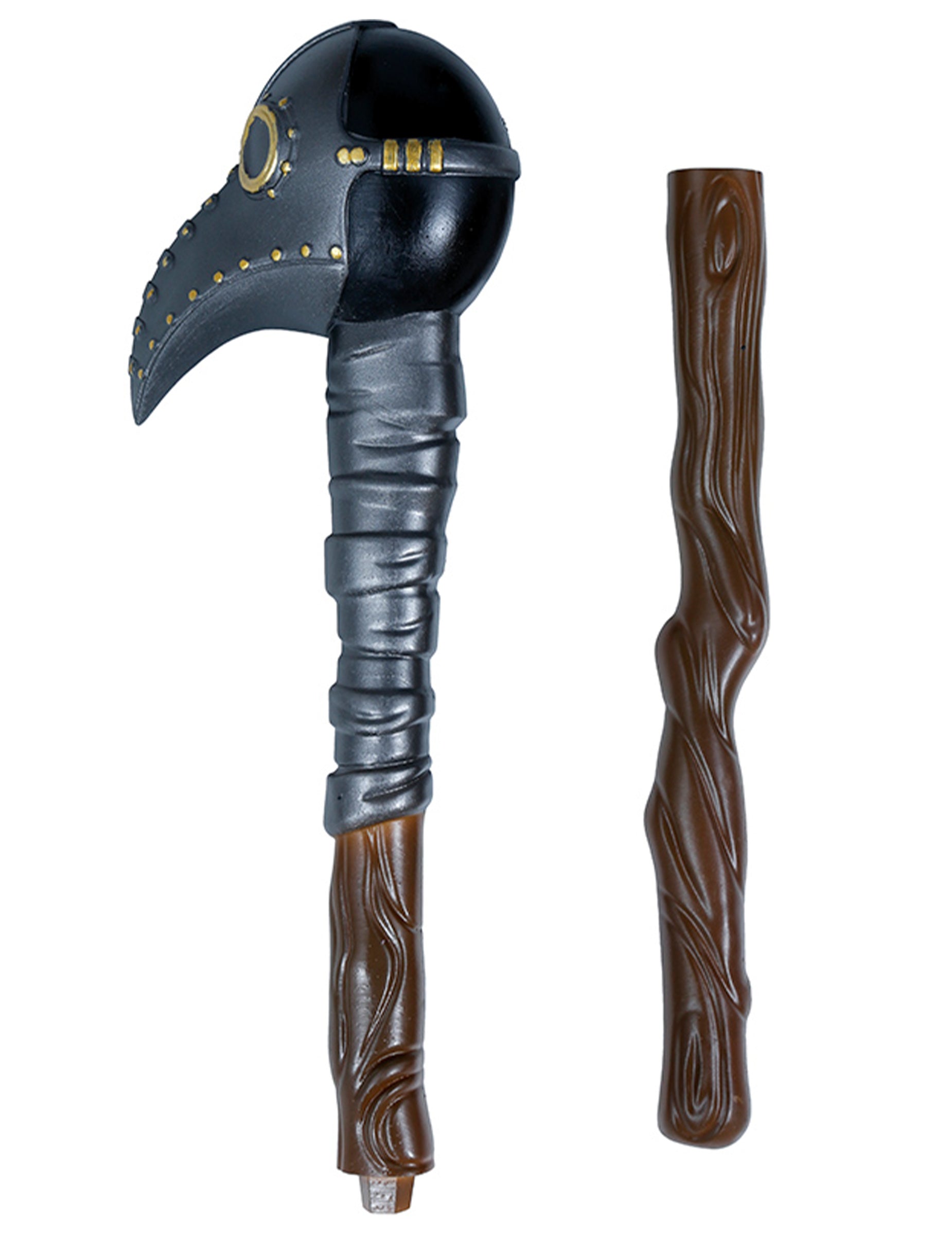 Ce sceptre en plastique de 70 cm environ s’inspire de la sinistre silhouette des médecins de la peste. Composé de deux parties à assembler, il possède un manche effet bois et une tête sculptée en forme de masque à bec corbeau, renforçant l’allure mystérieuse du personnage. Parfait pour accompagner une tenue macabre lors d’un Halloween effrayant, d’un bal gothique ou d’un spectacle d’époque.