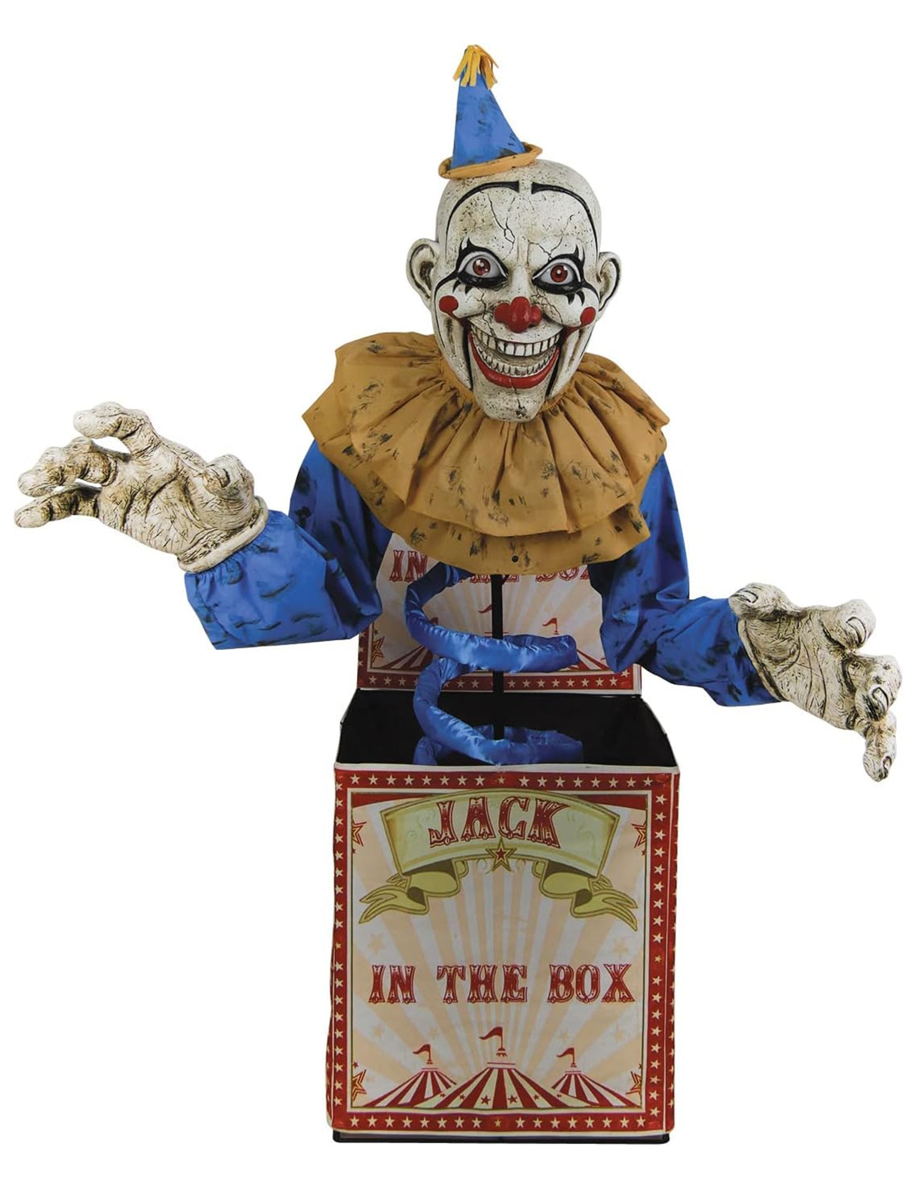 Scufundați -vă în groază cu acest jack în The Box 180 Decorare animată a clovnului cm, O piesă centrală la fel de izbitoare pe cât este înspăimântătoare să vă transformați spațiul într -o adevărată scenă de coșmar. Acest clovn uriaș care ieșea din cutia lui atrage instantaneu toate ochii cu chipul său mohorât, costumul său colorat și râsul său înfiorător. Clovnul vorbește și izbucnește râzând, în timp ce maxilarul său se deschide și se închide la ritmul cuvintelor sale. Ochii lui se luminează și se aprinde uneori, consolidându -i aspectul macabru. Se balansează de la stânga la dreapta, făcându -și și mai deranjant prezența. Acest decor animat funcționează pe o priză AC 220-240V, ideală pentru animații continue în timpul celei mai imersive setări de Halloween.