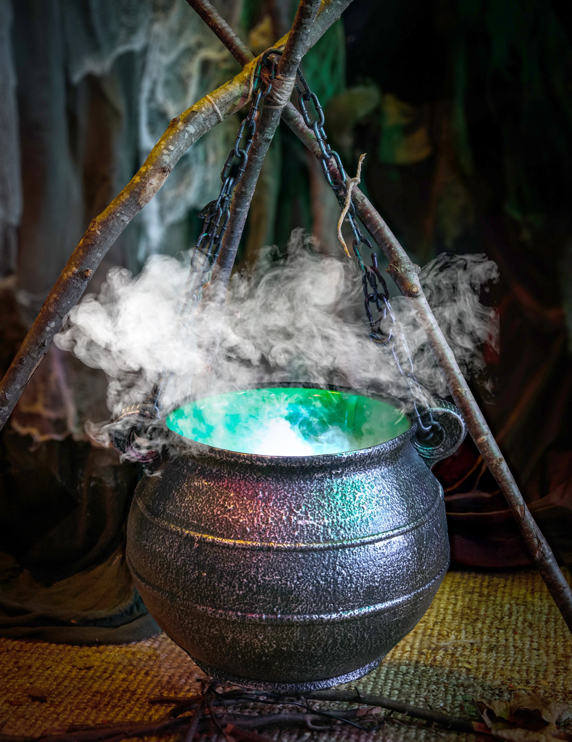 Acest ceaun de vrăjitoare cu ventilator de pulverizare 45 cm Acesta este accesoriul perfect pentru a crea o atmosferă supranaturală în decorul tău de Halloween. Cu efectul său de fum și strălucirea verde stranie, acest cazan negru texturat arată ca și cum ar fi venit direct din bârlogul unei vrăjitoare. Pulverizatorul încorporat produce o ceață groasă și rece care se ridică din cazan, în timp ce o lumină internă aruncă o strălucire stranie pentru a simula o poțiune care clocotește. Perfect ca complement pentru o scenă cu o vrăjitoare, o carte de vrăji sau o coadă de mătură. Pur și simplu toarnă apă în baza verde. Funcționează la o priză de curent alternativ de 220-240V pentru o difuzie continuă și neîntreruptă a ceții.
