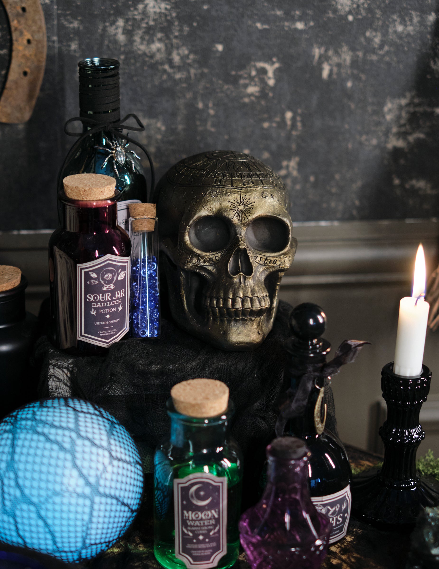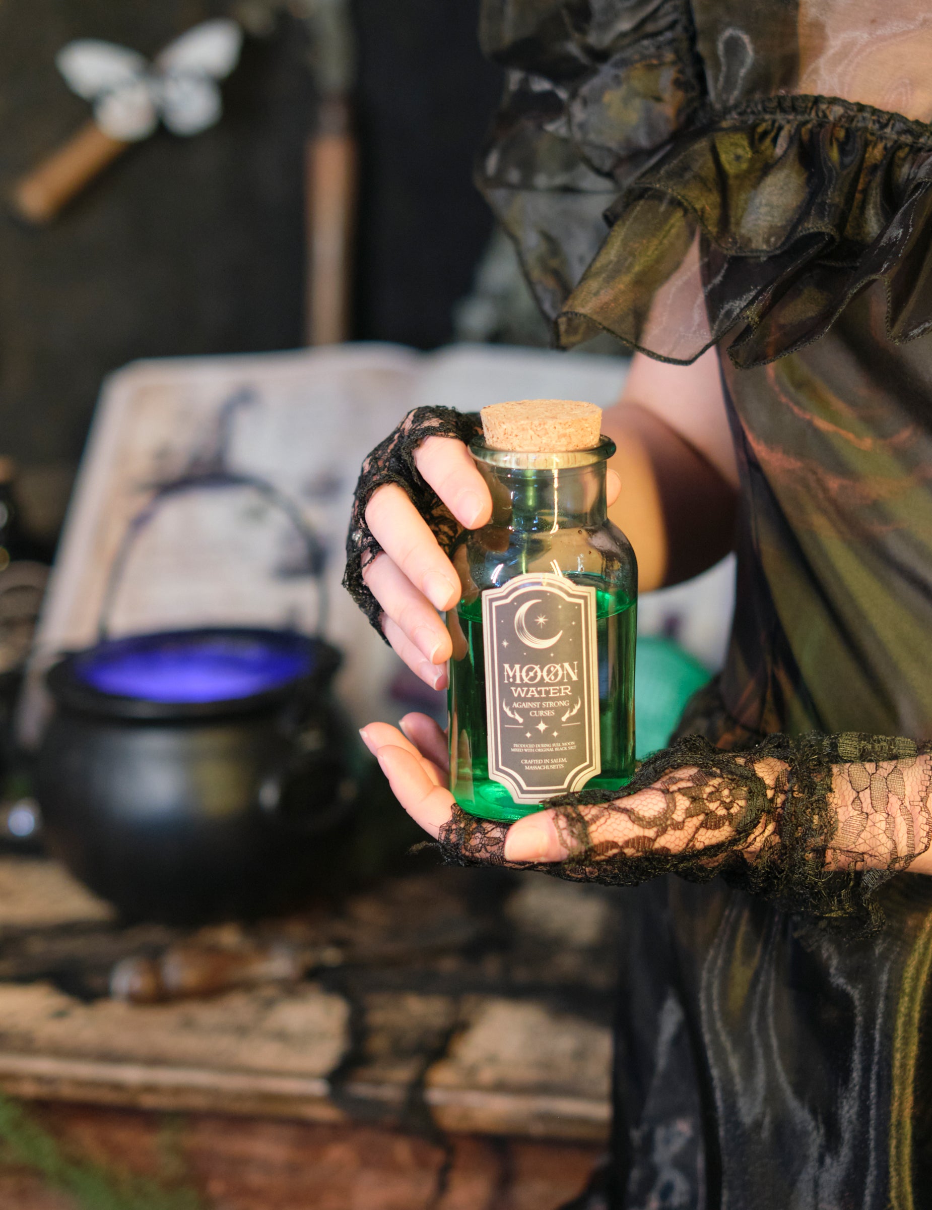 Acest flacon de sticlă verde „Lună” de 13,5 cm Sedus de stilul său magic și ceresc. Îmbrăcat cu o etichetă lunară decorativă și închisă cu un dop de plută, merge perfect cu un decor inspirat de ritualuri antice. Datorită compactului său 6.5 cm Pe larg, își găsește locul într -un cadru de Halloween inspirat de stele.